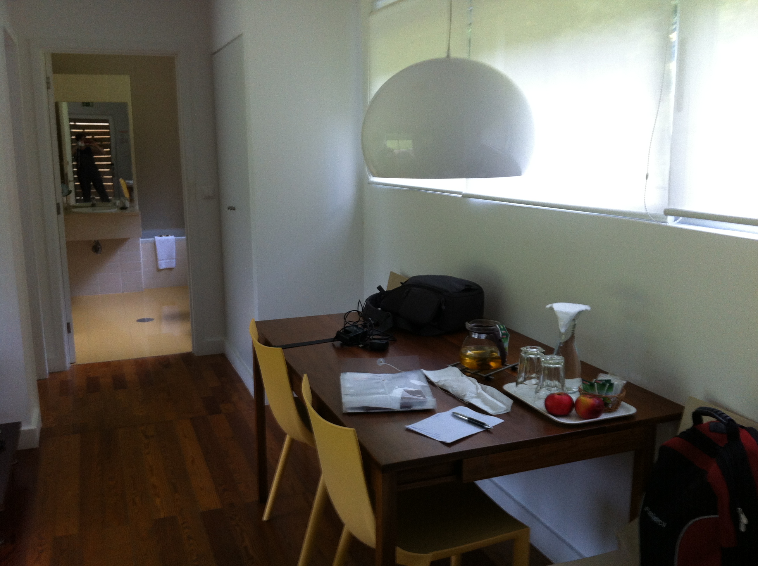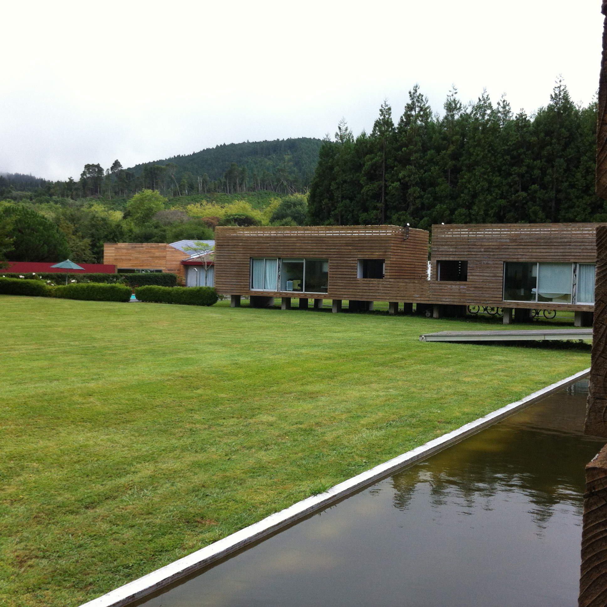 We had booked three nights in Furnas Lake villas, a set of modern wooden chalets on the other side of the road from Furnas lake. Each little house has its own living area, bathroom, small kitchenette, a small terrace, and a fire-place. You look out on the lush forests of Furnas. There is also a swimming pool on the grounds. You can take care of you own meals, or have a breakfast delivered at 12,5 euro per person, and have dinner at the guest tables, which you have to book a day in advance. You can choose to order a cozida das Furnas, a stew of meat, vegetables and potatoes slowly cooked in a whole in one of the sulphurous ponds on the border of lake Furnas: caldeiras.