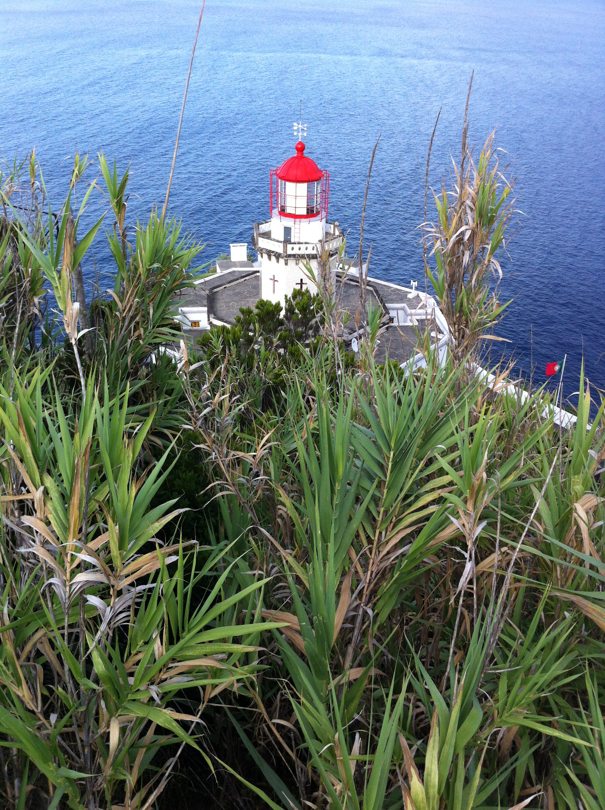 We decide to find better weather by driving up north and visit the Northeast coast of the island. We stop at Cha Gorreana for some ice-cream and drive to Nordeste where the sun welcomes us. We drive towards the lighthouse of Farnel, south of Nordeste. We leave the car at the main road and walk down to the oldest lighthouse of the island, with great views of the coastline.
