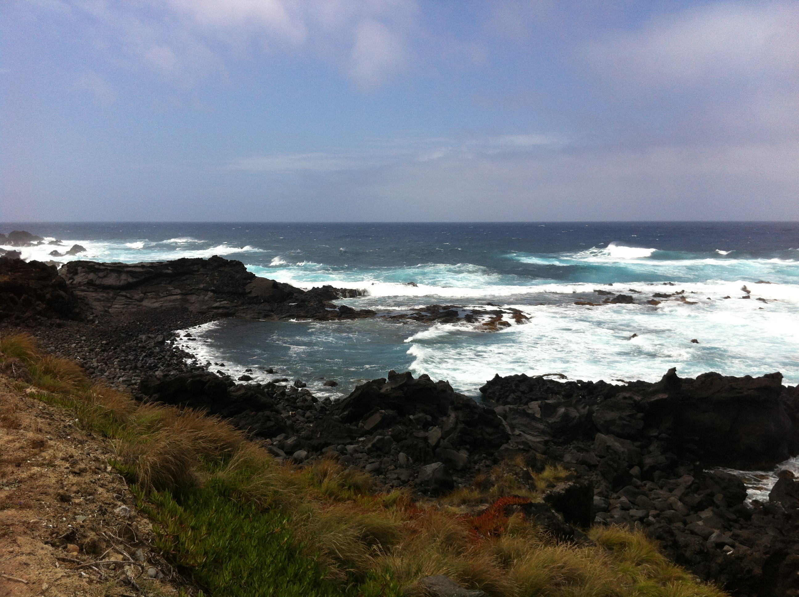 We only take one portion and it was more than enough for us two! We then go out to the piscines naturalis, a kind of natural swimming pools in the sea between the cliffs. As dinner we finish the bolo levada and cheese in our fridge with some Azorean pineapple.