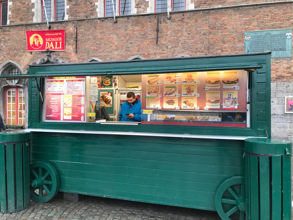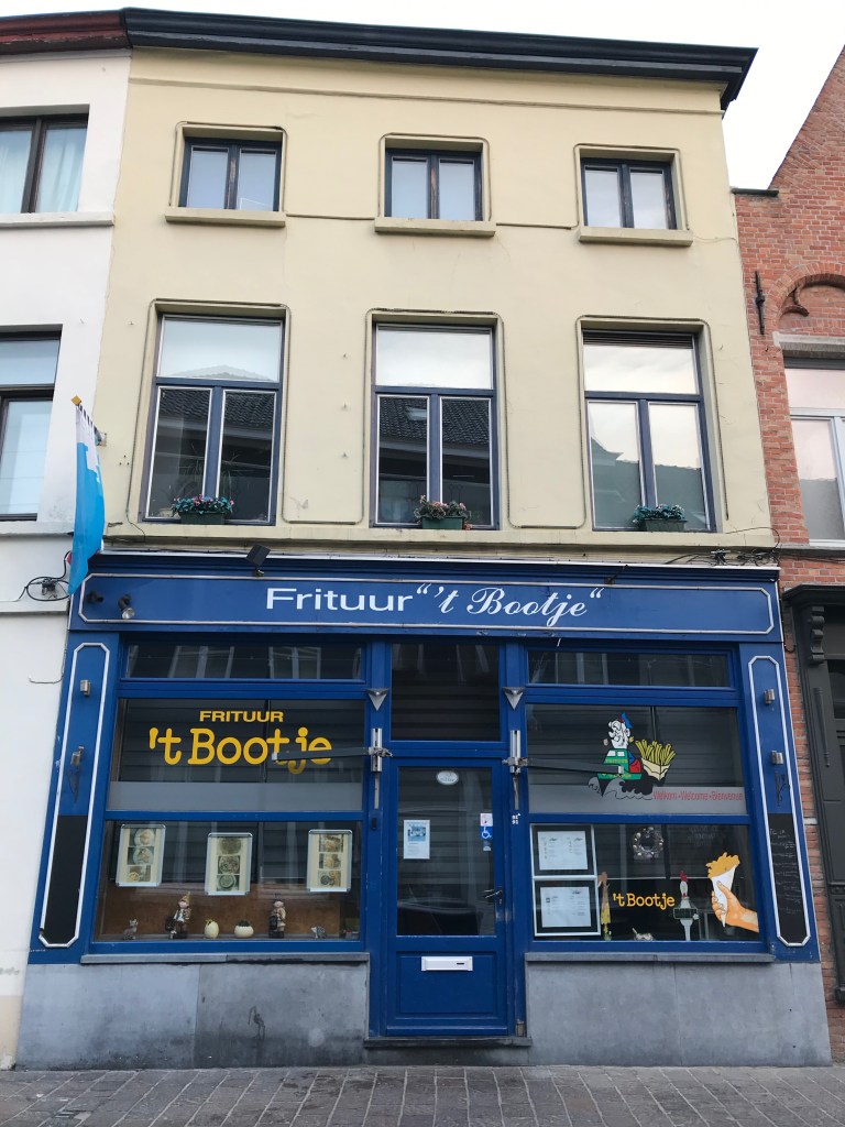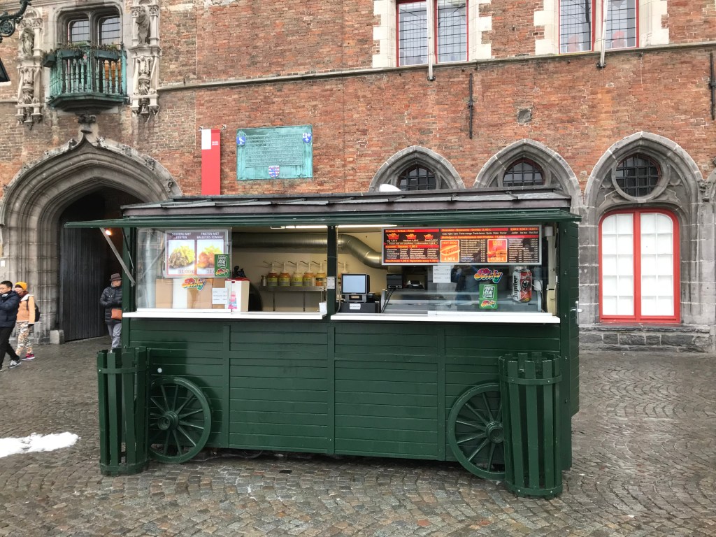 And then there are the Belgian Fries. They are called French fries but are in fact Belgian not French. And we now how to bake fries, crispy golden on the outside, soft on the inside. Belgium traditionally grows a specific type of potato just for fries. The best places for Belgian fries in Bruges are a bit outside of the city centre, and a bit out of the way for most tourists. But it you want to eat Belgian fries and short on time, just buy them at one of the two green stalls on the main square, many locals also buy them here after a night out. The first stall selling french fries on the main market appeared here in 1900! Most restaurants serve fries with many of their dishes, and these are usually also prepared the Belgian way. Real Belgian fries are not the thin sticks like you eat at Mc-Donalds, but are wider, with more soft potato on the inside. The best fries I have ever eaten are served in a restaurant in Anderlecht-Brussels: Friture René. In Bruges, Frituur Bosrand probably has the best fries in Bruges, but is located on one of the access roads into Brugge, so only if you come by car, you can consider to make a stop here. In the Langestraat, the road towards the windmills you have two places: Frituur Bistro ’t Bootje and Royal Frituur where you can get vegetarian and vegan dishes with your fries. Another good place close to the Gentpoort is Frituur De Gentpoorte. Traditionally Belgians love to eat their fries with Mayonaise or Tartaar sauce ( in many places they make the Tartaar sauce freshly and has onions, pickles and fresh herbs), or they eat their fries with Flemish stew on top. The stew is usually homemade in the Frituur. Most places now serve their fries in a square carton box, but traditionally they were eaten from a cone paper bag ( in the old days they used old newspapers for this)