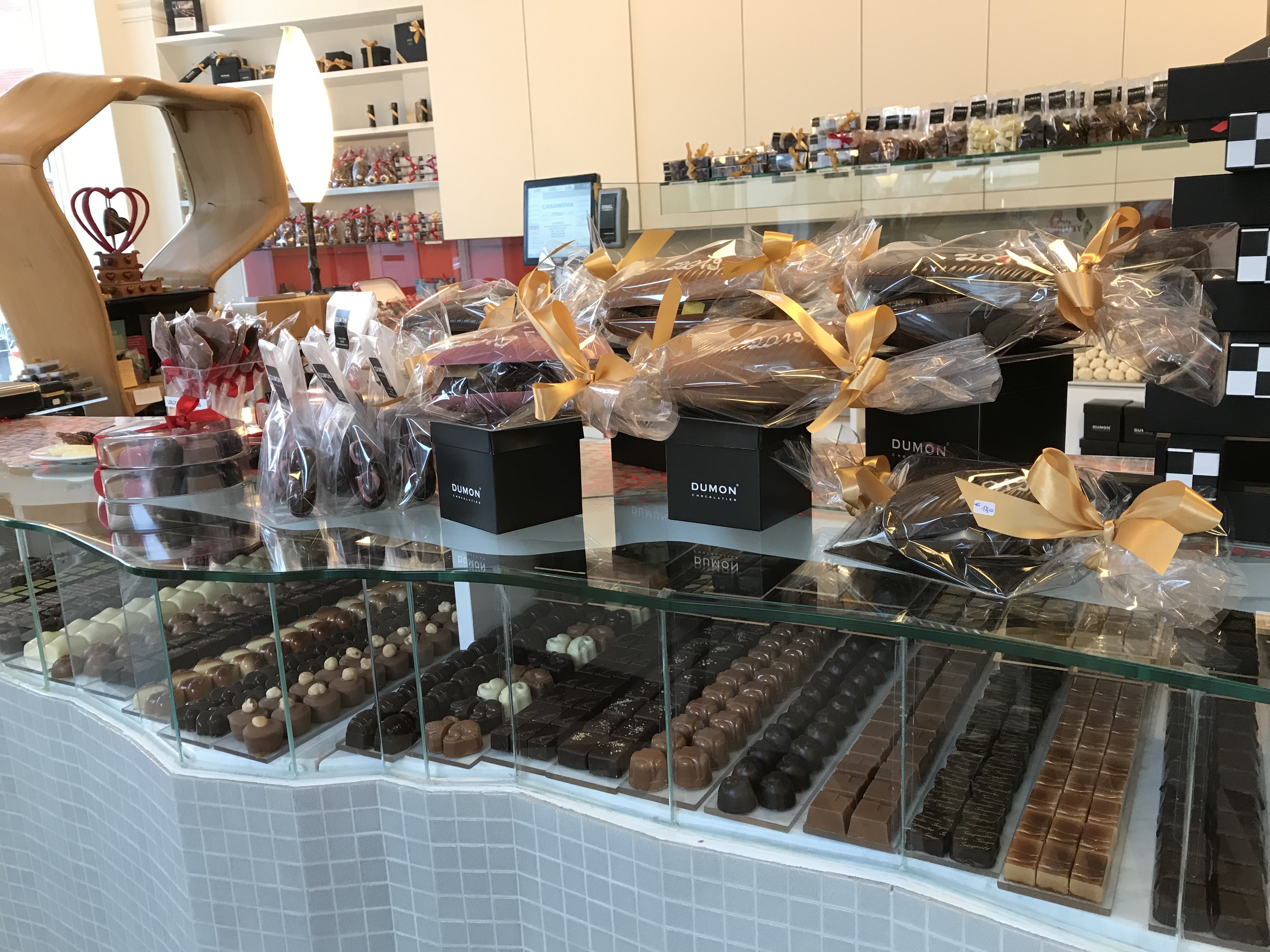 Chocolate Dumon, they have three shops in Brugge, one very small one at the Eiermarkt, a few steps away from the main square, one larger shop on the Simon Stevin square and a third one close to the Walplein and the Beguinage. Dumon offers very good quality for a very correct price.