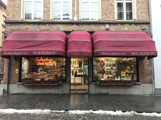 Sukerbuyc is one of the long standing chocolate shops in Brugge, the pralines are made in the atelier just behind the shop. They sell a more classic range of good quality. They have a great coffee- and tea-house just across the street: The Proeverie, with an English style decor.