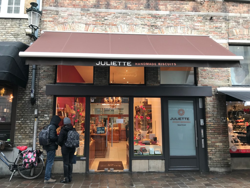 The Chocolate Line, by Dominique Persoone is probably the most famous chocolatier in Brugge, but also the most expensive one. They offer a range of very exotic pralines. Fillings go from all kinds of fruit over tobacco, chili, onion, to ginger, lavender to the classic praliné filled praline. They also have chocolate to sniff or to body-paint with.