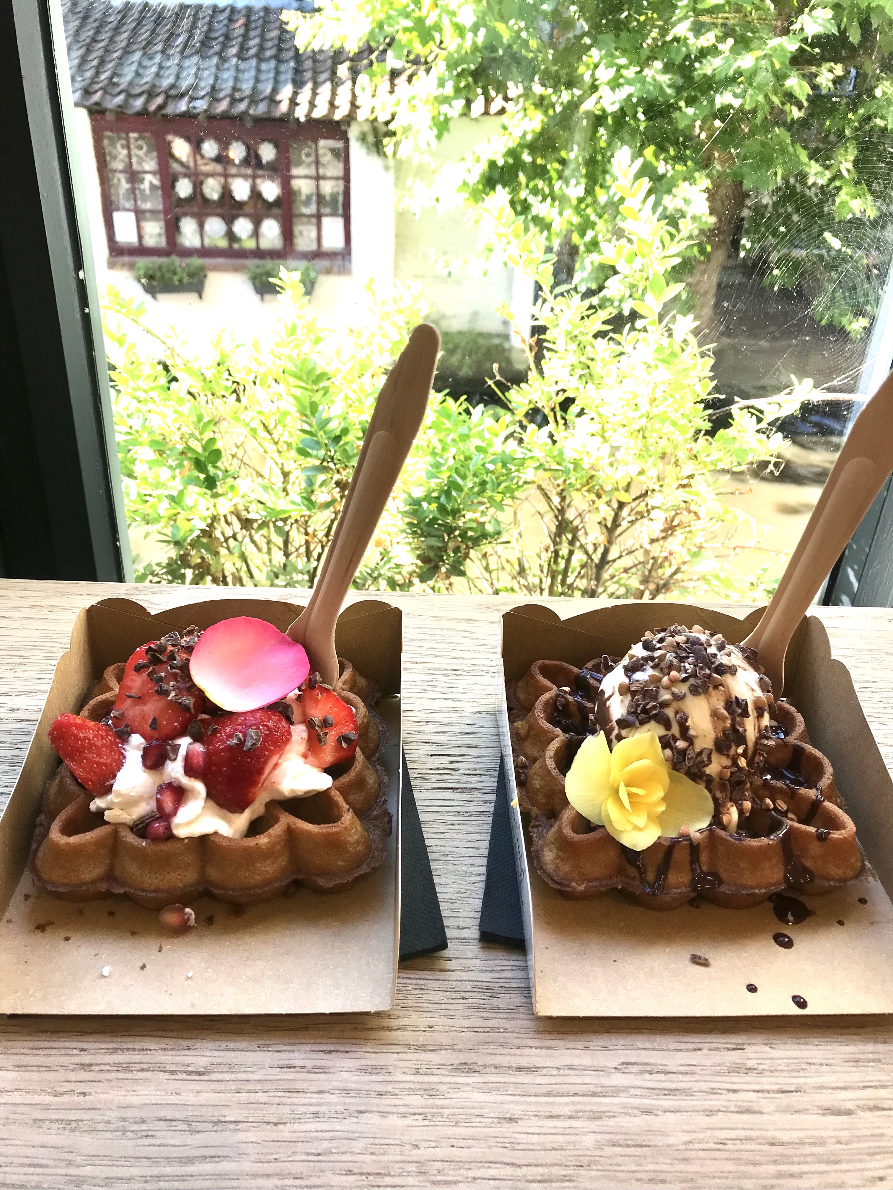 If you are looking for a creative guilt free alternative for the traditional waffle then try Otto’s waffle atelier in the Katelijnestraat. They created a beautiful new Bruges’ waffle inspired by the design of lace or doilies, an old traditional typical Flemish handmade textile product that unfortunately is disappearing quickly. The result is a beautiful looking and very tasty fresh oat waffle with or without (seasonal) toppings served by the ever friendly owners Otto and Katrien or one of their staff. The waffles are made with the best organic ingredients, using an oat based dough, with coconut blossom sugar on top. The toppings are homemade using fresh fruits, homemade vegan ice-cream (which can also be served in a waffle based cone!), and topped of with beautiful hand picked organic flowers which, yes, you should eat also! The waffles are gluten and lactose free and for the vegans among us, you can order a vegan waffle here!! Can’t get enough of it? You can take some waffles home in mini cookie form, they are vegan! If you visit the Gruuthuse museum you get a voucher with your entrance ticket to taste their vegan and gluten free Duke of Burgundy waffle at a reduced price.
