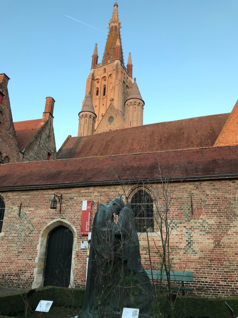 As an art and history lover, the old Saint-Johns hospital dating back to the 12th century, one of the oldest hospital buildings in Europe, is one of my favorite museums in Bruges. Every tourist visiting Bruges gets at least a glimpse of the outside, but not everyone sets a foot inside. It is a museum and it shows old paintings, so many visitors immediately label it as boring, dusty, a pile of old bricks, with paintings most don’t understand any more. It being a religious institution only makes matters worse, the catholic church ranks very low in popularity polls these days, especially in Western Europe. So if tourists have to choose between the Choco-Story, the Friet-museum, the interactive Historium or the old Saint-Johns hospital, the last one will often end up at the bottom of the list, or will not even make the list of ‘have to visit’ museums in Bruges. Most tourists visiting Bruges are charmed by the old medieval cobble stone streets, the gothic palaces, the mysterious churches, the white washed stepped gable one room houses with cosy inner gardens, the beautiful beguinage, the horse carriages that enforce the medieval feel, the impressive Belfry, and of course the winding canals with old stone bridges that create a romantic view after every corner you take. It is this medieval feel of the city that is the real attraction of Bruges.