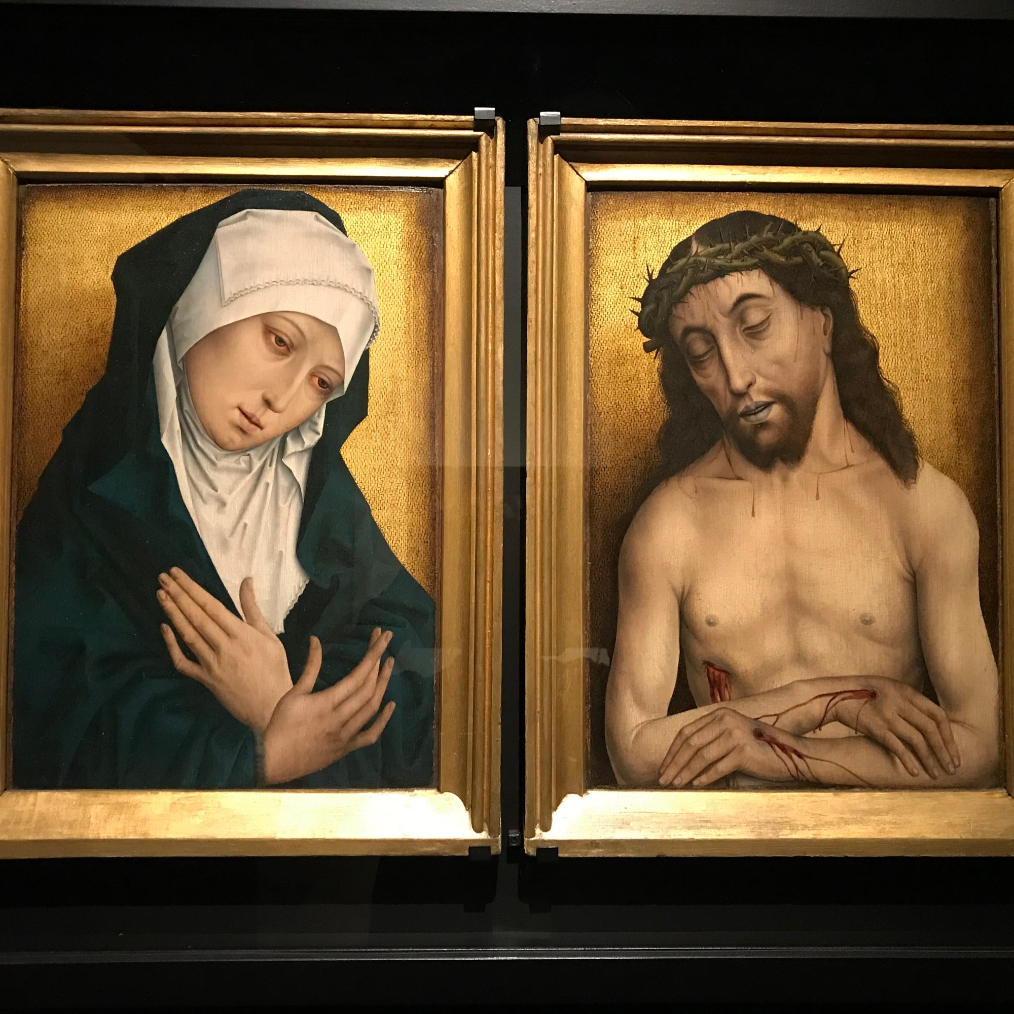 Religion and art were closely intertwined in the Middle Ages and the second part of the exhibition dives into the work of Hans Memling, one of the famous Flemish Primitive painters who worked for the rich and famous in the 15th century. Musea Brugge holds the second largest collection of works by Hans Memling, two of which are the only signed works by the artist. No less than four paintings were commissioned for the Saint Johns’ hospital. The Museum Saint-John’s hospital has seven works on show, the other two can be admired at the Groeningemuseum. His paintings show large influences by both Rogier Van der Weyden, for whom he had worked in Brussels and Jan Van Eyck. Memling was innovative as he was one of the first to paint lanscape backgrounds and is admired for his beautiful portraits.