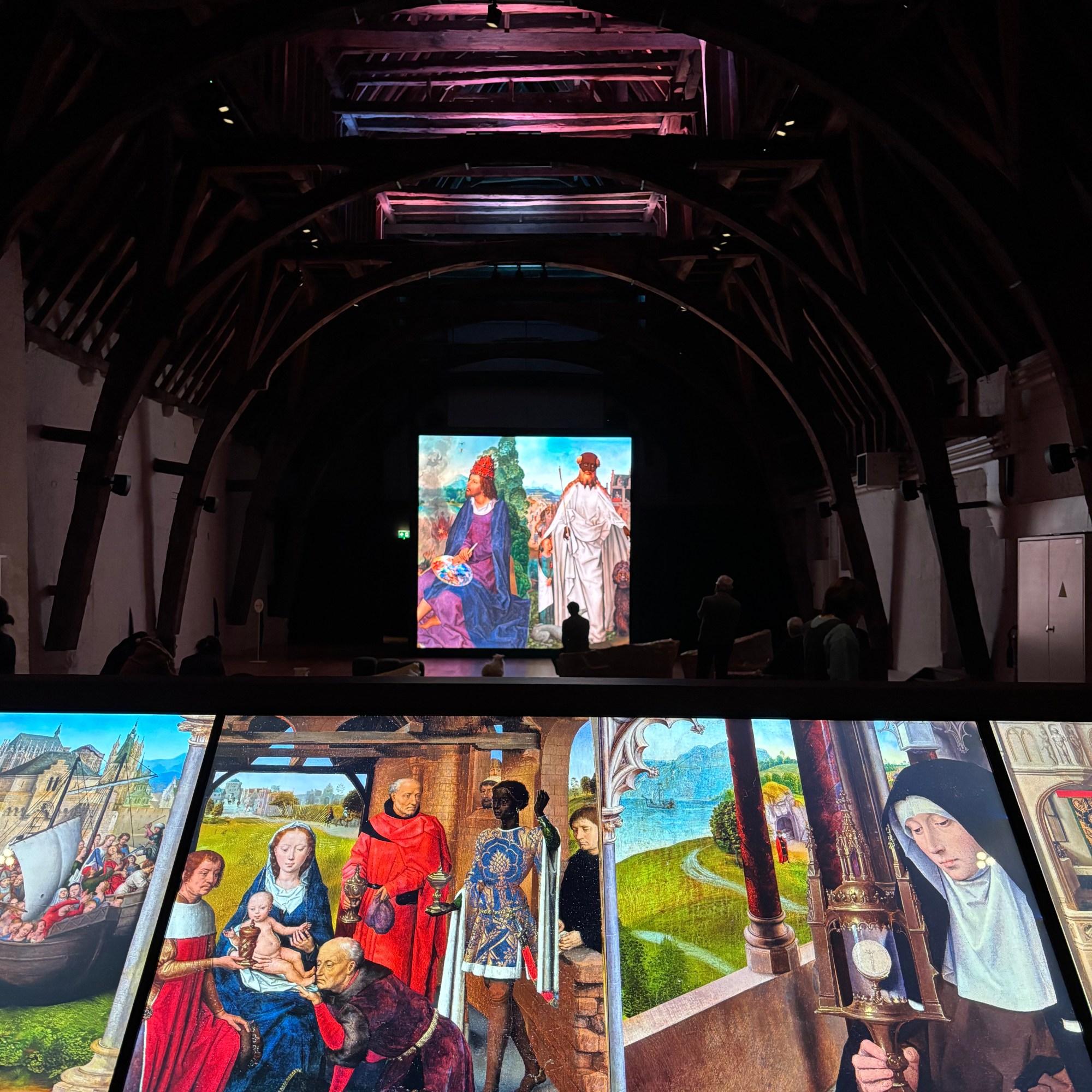 Not to be missed is the 13th century attic of the hospital with its monumental oak wood rafter (wooden roof structure), one to the oldest in Europe. Here you can discover the recently opened interactive Memling Experience, where the visitor can see details of Memling’s paintings on a huge screen and where children and adults can discover the paintings through fun interactive games on several touch screens.