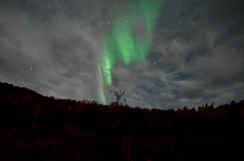 Set your expectations right, the Northern Lights do not always look like on those spectacular professional photographs, often they are weaker, are partly obscured by clouds, other elements in the scenery or light pollution, and they come in different colors, from green over red, blue and purple. Sometimes you see it during an hour, sometimes only a few minutes, it often comes and goes, so stay put and be patient. Taking a long exposure picture might help you recognize it when it is weak. Sometimes it paints the whole sky green, sometimes it is only one small streak in the sky.