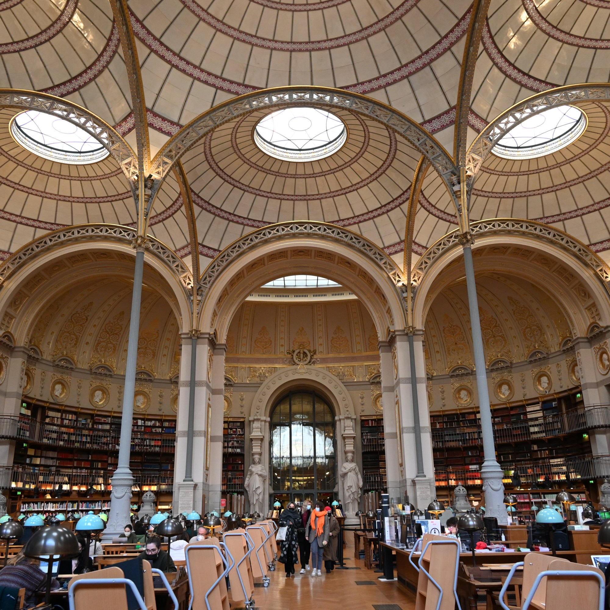 The next morning I made a walk around the first arrondissement enjoying the sunny weather. I walked over to the Richelieu library, one of the sites of the Bibliothèque National de Paris. The national library was originally founded by Charles V in 1368 as Bibliothèque du Roi at the Palais du Louvre. It became a large collection under the reign of Louis XI who moved the collection to its royal residences in Amboise, Blois and Fountainebleau. Louis XII merged the Blois library into the Bibliothèque du Roi and enriched it with, amongst others, the Gruuthuse collection from Bruges, an impressive collection of handwritten manuscripts. It later moved to Paris, to Rue de la Harpe in 1604 and to Rue Vivienne in 1666. It opened to the public in 1692. The library’s collection swelled to over 300,000 volumes when private collections were seized during the French revolution and became a national property as the “Bibliothèque Nationale”. In 1868, the library was relocated to Rue de Richelieu in buildings constructed by Henri Labrouste. The Labrouste Reading Room is a real gem. As a visitor you can only enter the reading room for a few meters but it is enough to get a good view and take some pictures. On the third floor you can visit the Rondel Gallery, the rotunda of Performing Arts, the glass bridge and the manuscripts room, the visit is free and there are guided visits on Saturdays. It is close to the Palais Royal so I also made a stroll through the park of the Palais Royal.
