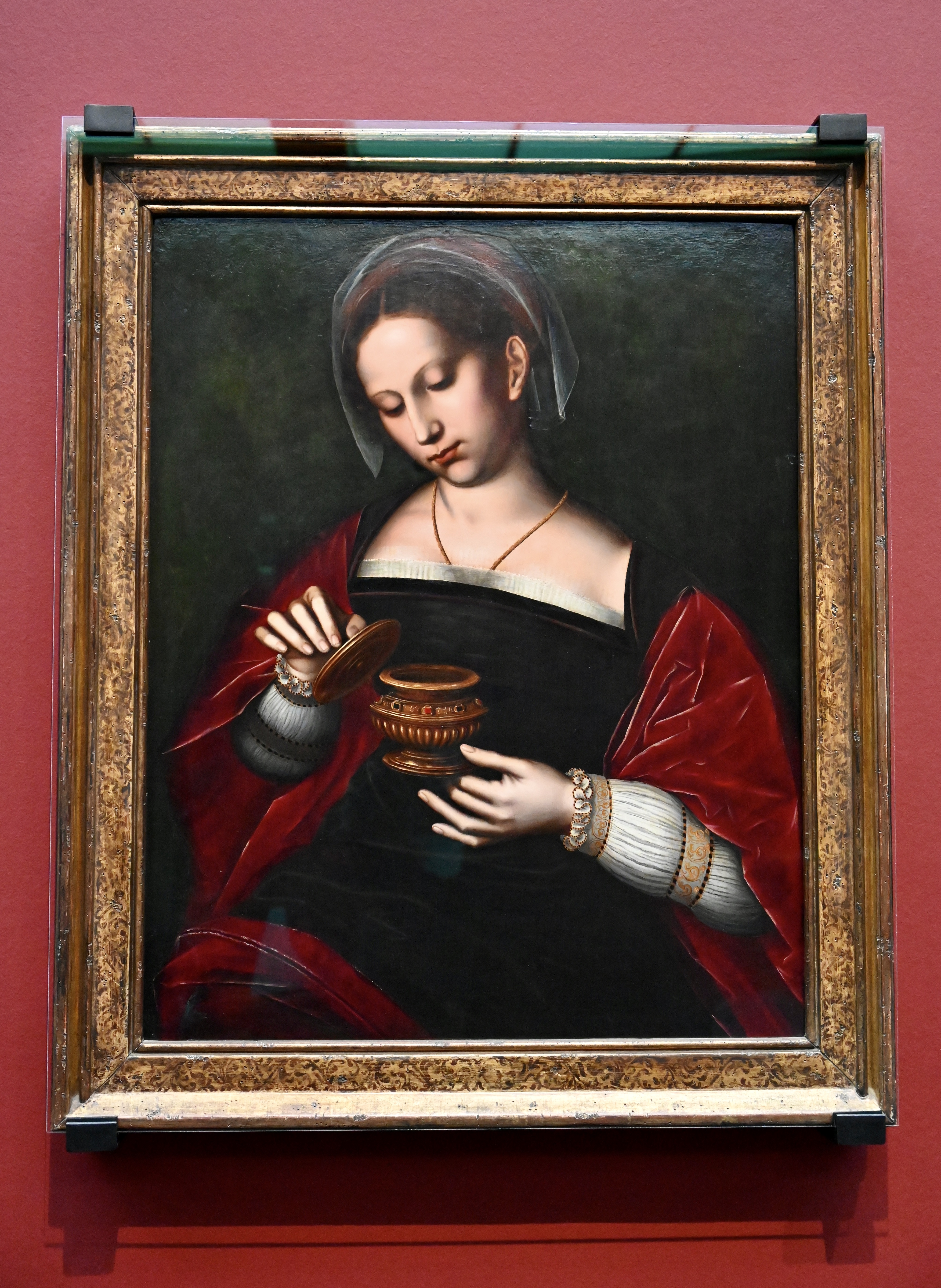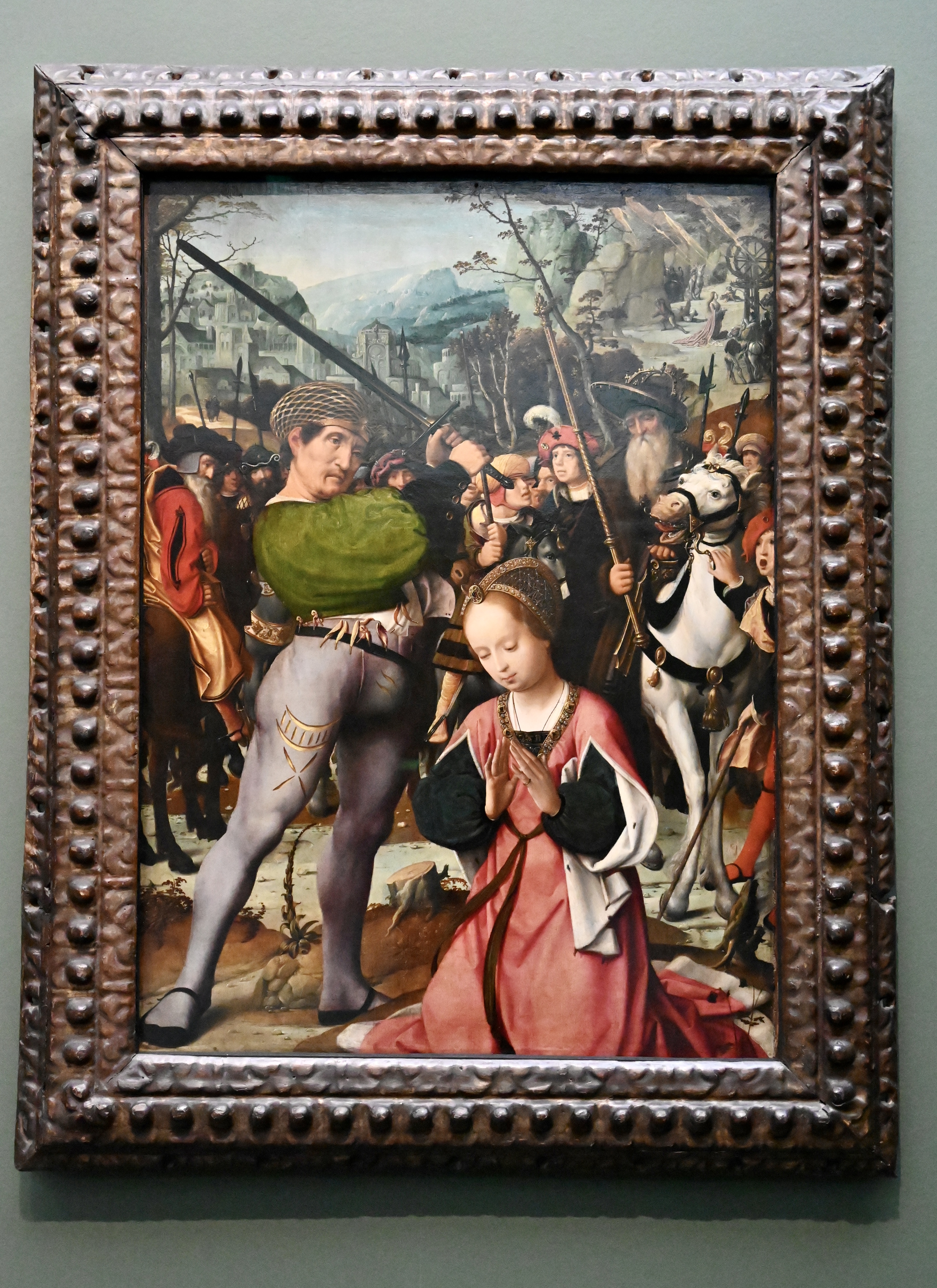 In the following room I am drawn towards a painting by Jan Provoost of Saint Catherine just before she will be beheaded. How she can keep her calm while the executioner already sways his sword up above her head is a mystery to me. It is part of a triptych of which the left handed panel is part of the collection of the Boijmans-Van Beuningen museum in Rotterdam. The Boijmans-Van Beuningen museum has now an exciting new depot designed by Winy Maas that I should visit soon! In the third room I love the portrait of Mary Magdalene by Ambrosius Benson, who seems to have looked very closely to the paintings of Leonardo Da Vinci and imported the Italian renaissance style of painting into Bruges.