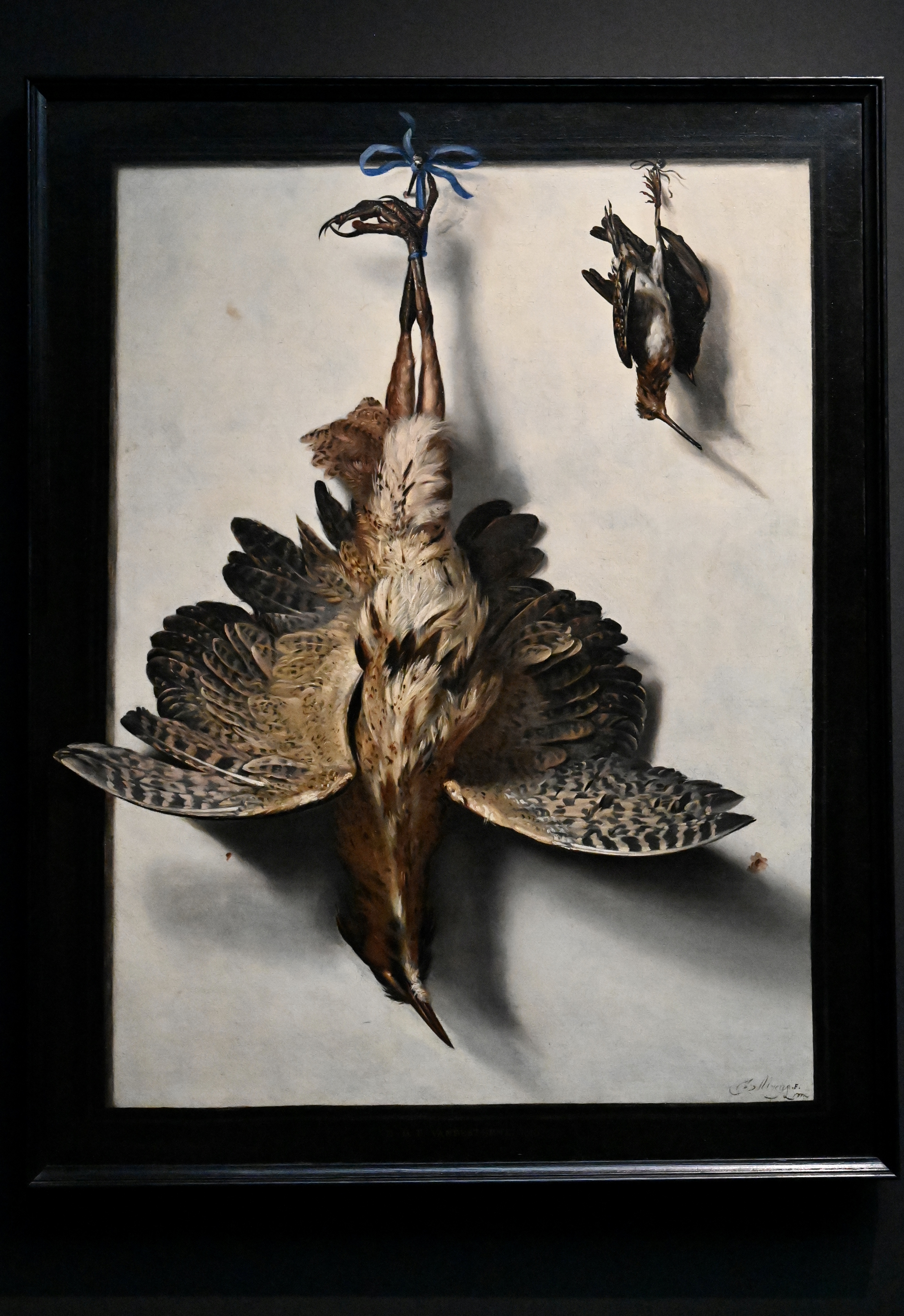 The still life with Birds by Frans van Cuyck de Myerhop, an artist born in Bruges in the 17th century, attracts me although I am strongly against hunting animals and a vegetarian. The impressive trompe l’oeil technique together with a subject that strongly refers to death seemingly have a strong attraction on me. Only recently, on the arts festival ‘Beestig’ in Damme, I saw a contemporary work by the Belgian artist Gideon Kiefer that had the same strong visual effect on me. This painting also throws me back to my childhood when I saw my grandmother slaughter a rabbit for Christmas, hanging it from its back legs from a nail in the shed, just like these birds.