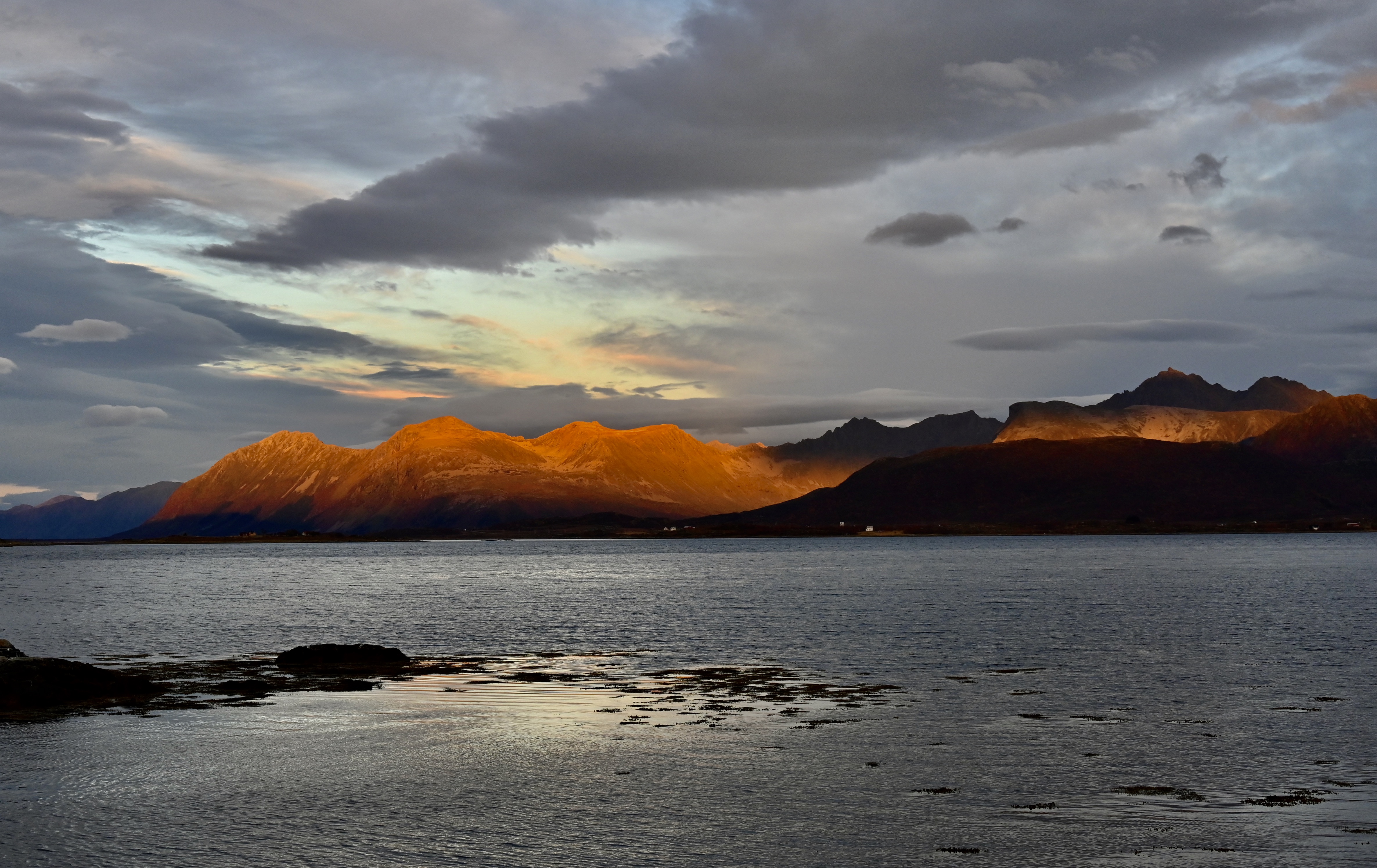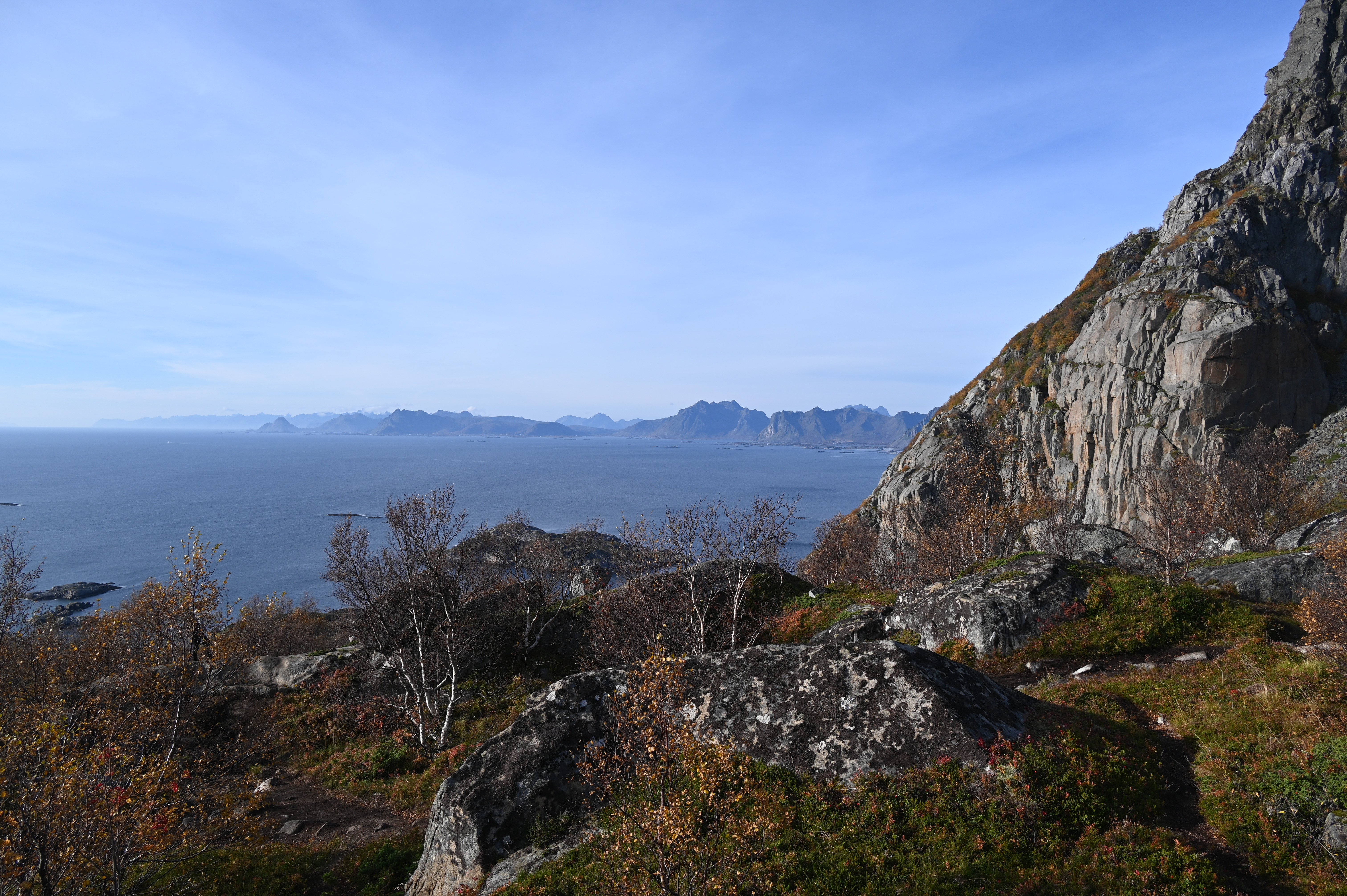 1. Festvågtind hike. The first five days we stayed on Vesteralen and Lofoten. After a stop in Andenes for a whale watching trip we drove on to Lofoten and arrived after sunset in Svolvaer where we had booked a room for three nights in the Scandic hotel. The hotel is a little dated but in good shape, with a friendly reception. The rooms are very small but clean and we had a small balcony overlooking the water. The hotel offers free tea and coffee all day and a fruit bowl in the lobby. The breakfast is very diversified with enough choice with a warm and cold buffet, fruit, yoghurt, muesli, different kinds of bread and pastries, and a gluten free corner. On our first night we had dinner in the Bacalao restaurant, mussels with fries and a vegetarian burger, both really tasty. The restaurant is nicely decorated, and just a 2 minute walk from the hotel. The first morning we took our time to get up and have a leisurely breakfast.
