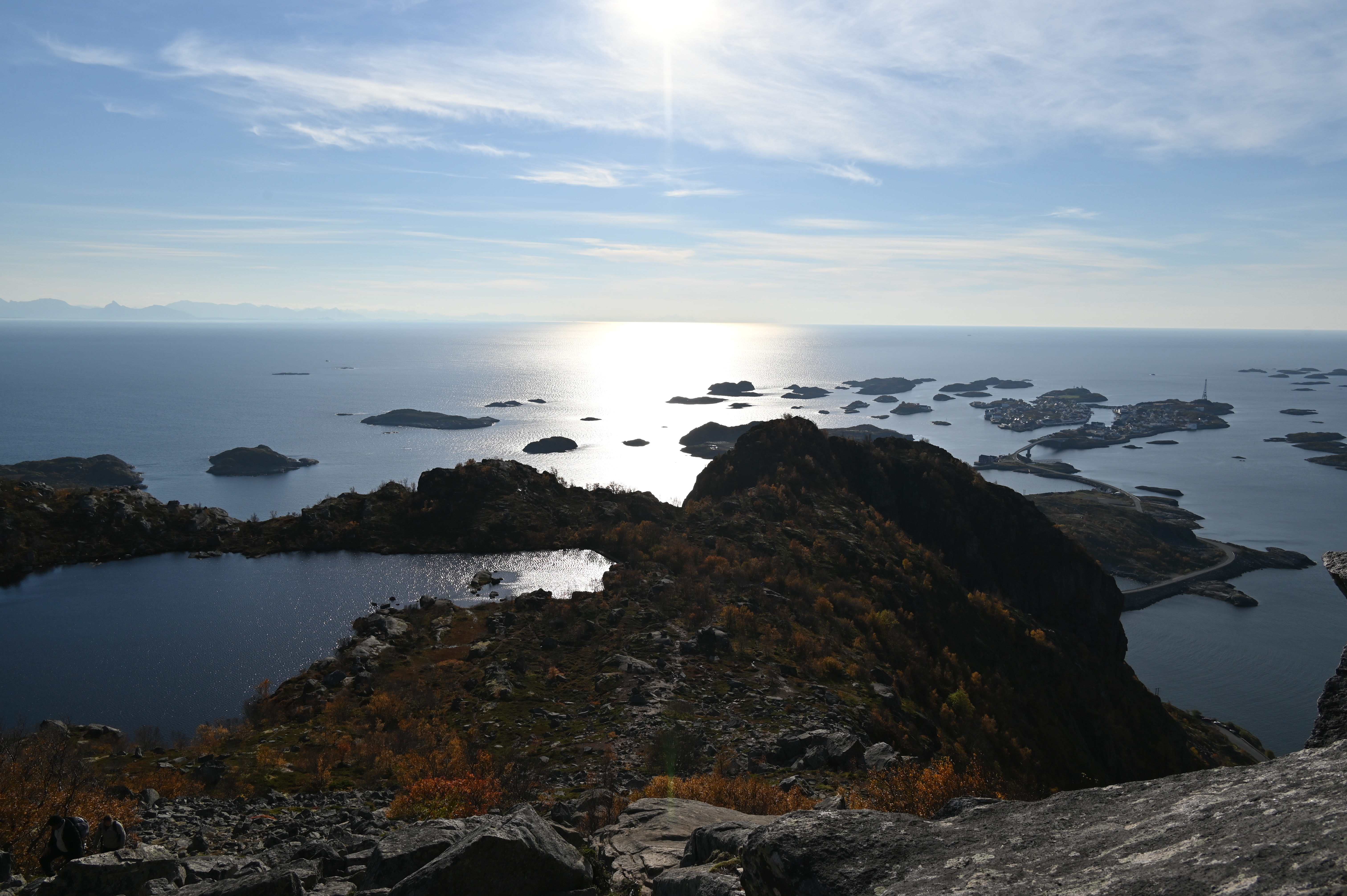 We left the hotel around 11 AM and drove to Herringvaer, where we parked our car just after the second bridge before you reach Herringvaer. There is a parking area just before the first bridge, where you have to pay. The parking area just after the second bridge is small pullout, only a few cars can park here, but since it was low season, we could park our car here for free. You then have to walk back towards the start of the trail in the bend of the road. Our plan was to hike up the Festvågtind, a stunning hike that rises directly from the sea near Henningsvær. The summit is 541 m high, the hike 3 km long and quite steep and the vertical gain of the hike is also 541 m since you start at sea level. It is easily one of the most popular hikes in Lofoten. From the summit you are rewarded with breathtaking views to the south over the town of Henningsvær and the surrounding islands. The start of the hike was not very well signed, but we found it when we saw others coming down. The trail starts on the right side of an old stone water tank in a bush of small trees. The first part of the hike going up is not always well marked. You have to scramble over a field of boulders after which the the little path is easier to follow. The walk could do with a little more signs. We started the hike around 12 AM and came back down 3,5 hours later. Halfway you reach lake Heiavatnet, which was once the ancient drinking reservoir of Henningsvær, where people love to swim in summer. Before you reach the lake the track veers sharply to the left in the direction of the peak to get close to the cliffs. You have to climb an area after which the trail begins to head more and more to the right (North) to avoid the cliffs while the small lake begins to appear below you. The trail sometimes climbs very steeply, but it never involves rock climbing. We took our time to take pictures on the way to and from the top, where we had lunch with a stunning view. We had beautiful sunny weather, and thus had a great view from the top. We were not the only ones doing the hike that day, but I was happy to do the hike at the end of September, it was not very busy, we met just a few other small groups. I guess in summer you probably have to stand in line to climb to top to enjoy the view. Since it was already 4 PM when we arrived back at the car, we decided to drive back in the direction of the hotel. We had our dinner at the Nordis restaurant of the Lofoten Suite hotel. We saw the Hurtigrutten arrive and many tourists flocking to the different restaurants, and were happy to have ordered before they arrived. We both had a pizza, and especially the vegetarian pizza was really good.
