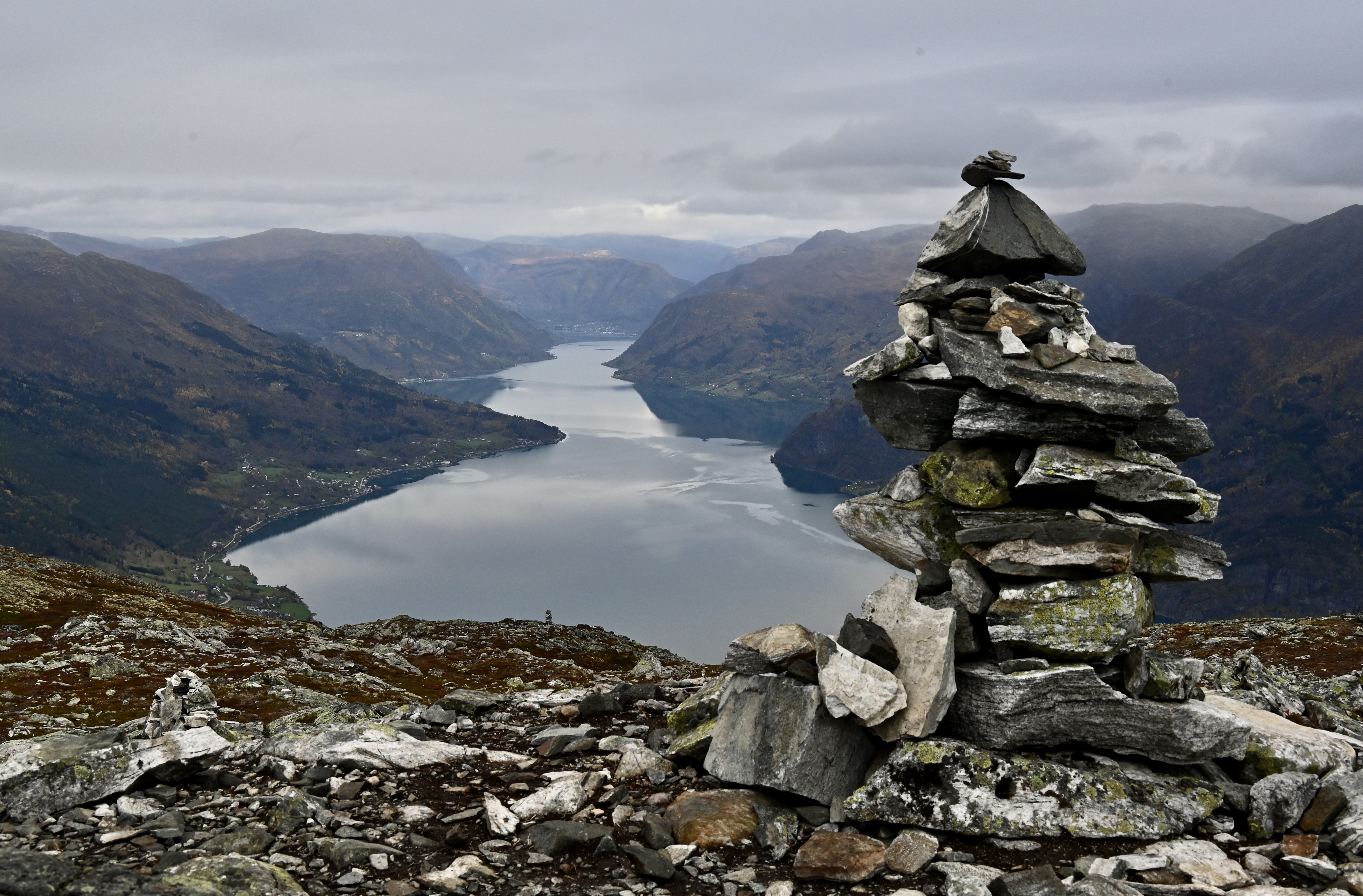 4. Mount Molden. In Sogndal we stayed at the Best Western hotel. The hotel has for Norway standards very large rooms. You have to pay for the parking during the day, but it is free of charge at night. We had planned to hike up mount Molden, a four hour walk with an elevation of 600 m till the top of mount Molden at 1118 m height. We drove in the direction of Hafslo and Mollandsmarki to the Krossen parking lot, some 2,5 km after the junction between the road from Hafslo and the road to Mollandsmarki, where we would start the hike up to the top of mount Molden. We started our hike around 10:30 AM and returned around 3:30 – 4 PM, longer than most people who do the hike in 4 hours, but we made a lot of stops to make photographs, not only of the surrounding landscape, but also of the plants, like the many mushrooms. The start of the hike is very well marked from the parking, it starts at the left side, and climbs up through a forest area, further on several parts have wooden walking planks and stone stair steps. You then reach the treeline and a first plateau with a beautiful view of the Lustrafjord. If you climb higher you reach the Svarthiller farm where you can write down your name, date of visit and country of origin down in the logbook you find in the postal box of the farm. The last third of the hike becomes increasingly rugged, rocky and barren and it is a steep climb up to the top from where you have great views of the Sognefjord, the Lustrafjord, Urnes and all the way up to Skjolden if the weather is clear enough. In the other direction you can see the Jostendalbreen glacier. It can get very cold and windy up here, so we took our lunch in the little farm house where you have a great view over the Sognefjord and where you can sit sheltered from the wind. Don’t forget to climb up to the antenna, where you see the two arms of the fjord at the same time. You then take the same way back down. This hike is less known to tourists but loved by Norwegians.
