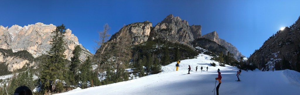 You have done the Sella Ronda in both directions, more than once, skied in Alta Badia, Corvara, Colfosco, Val Gardena, Selva, Passa Pordoi, Plan de Gralba and Arabba ….. and feel ready for a new experience? This is exactly where we found ourselves this year, 2022, the fourth year we came to ski in Alta Badia, stationed in San Cassiano. During one of our sessions in the sauna, we started talking to another couple who stayed at the same hotel. They were raving about a ski run they had taken that day. Their enthusiasm was infectious, and we decided to look it up online. This is how we learned about the famous Armentarola Ski Tour in the Lagazoui ski area that is part of the Super Dolomiti ski area.