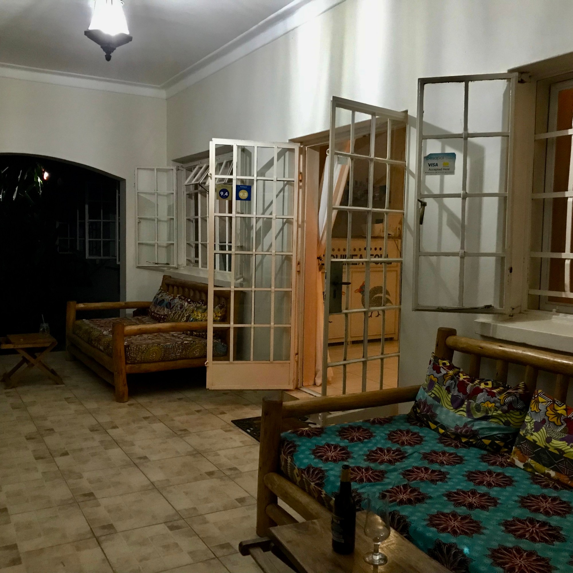 We arrived at the guesthouse around 6 PM and ordered dinner for 7:30 PM. At 7 PM Roadtrip Africa picked up our rental car, we had dinner and at 9 PM the taxi (included in the rate of the guest house) picked us up to bring us to the airport of Entebbe which is less than 15 min. away.