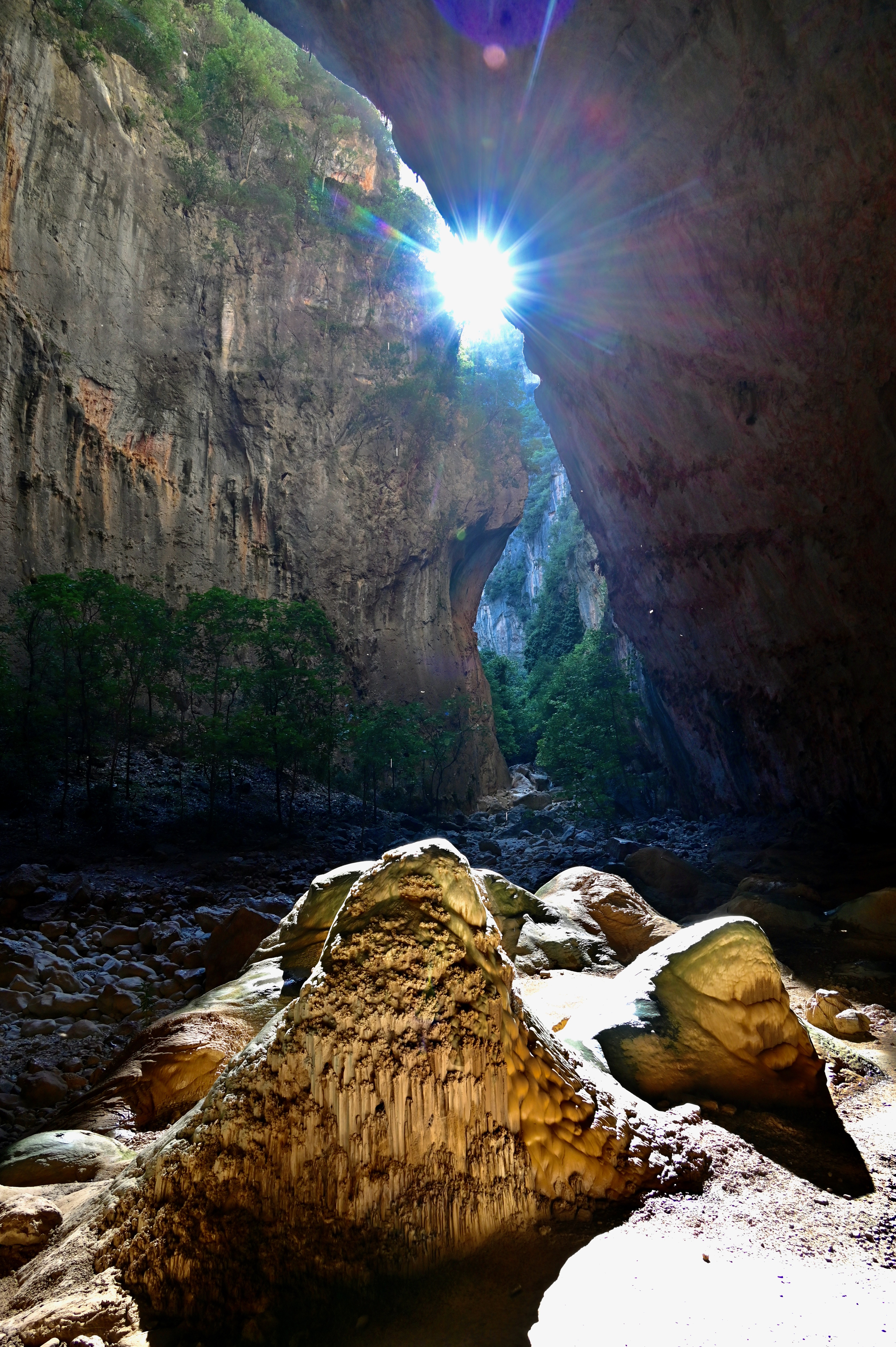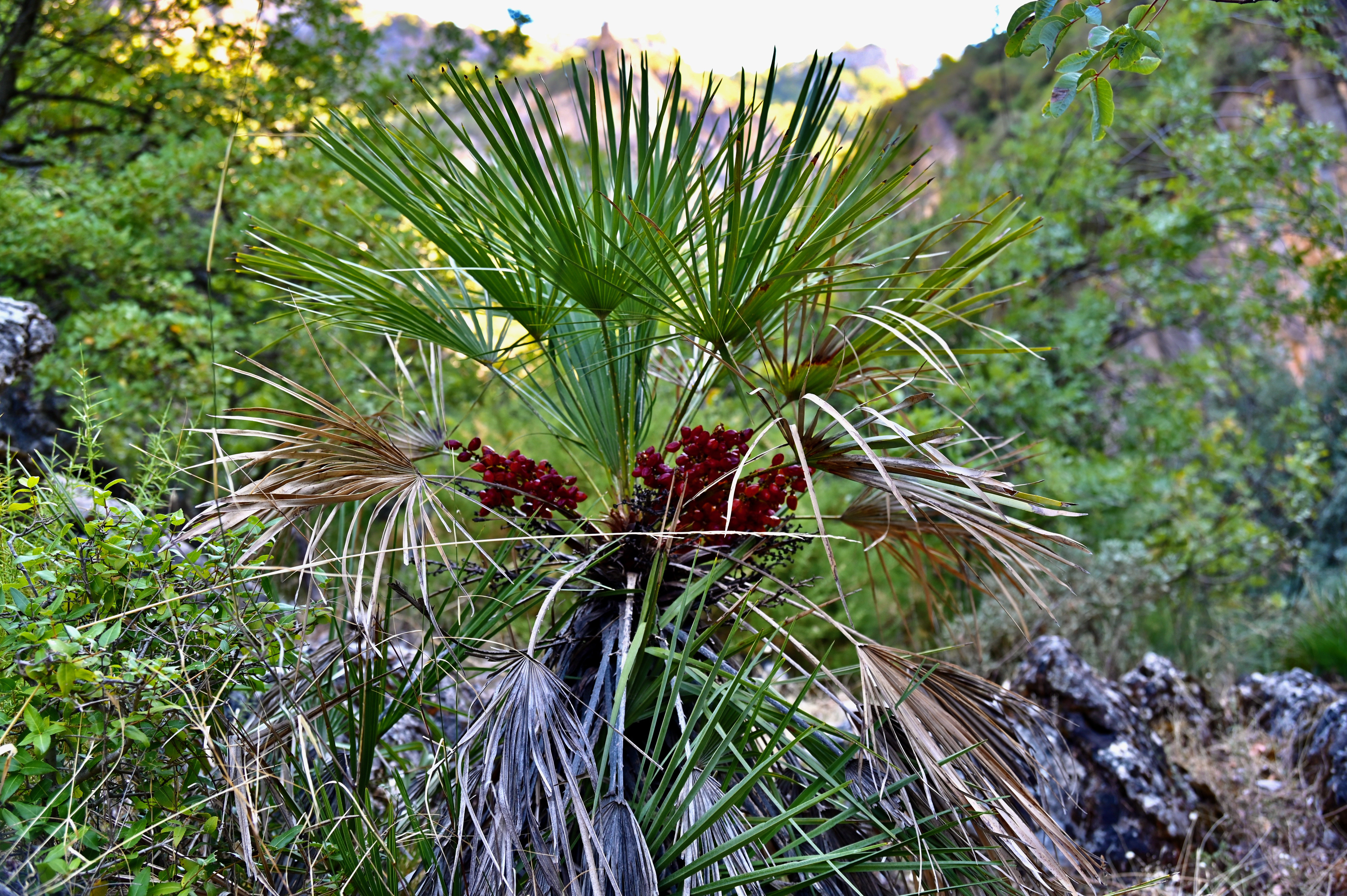 We were the first to park at the start of the Gargante Verde walk, which has only a very small parking area compared to that of the El Pinsapar walk. I guess no more than 10 cars can park here. We started our walk around 9:20, and although the linear walk takes only 2 hours in total the way back included, there is so much to see along the walk it took us almost double the time. The walk is a very steep climb going down the gorge and an equally very steep climb coming back up. Along the way you pass the nesting area of griffon vultures. They often fly by on eye level, sometimes passing just over your head and you can feel the clapping of their wings above you, a great experience. At the end of the walk, which is indicated as the end of the path, you have to continue about 100 m further in the (dry) river bed to come to the cave or ermita, with stunning stalagmites and stalactites. You can walk a bit further but then it becomes quite technical. The cave is really beautiful with the sunlight falling in from above. On the way back we stopped several times to take pictures of the many vultures circling overhead.