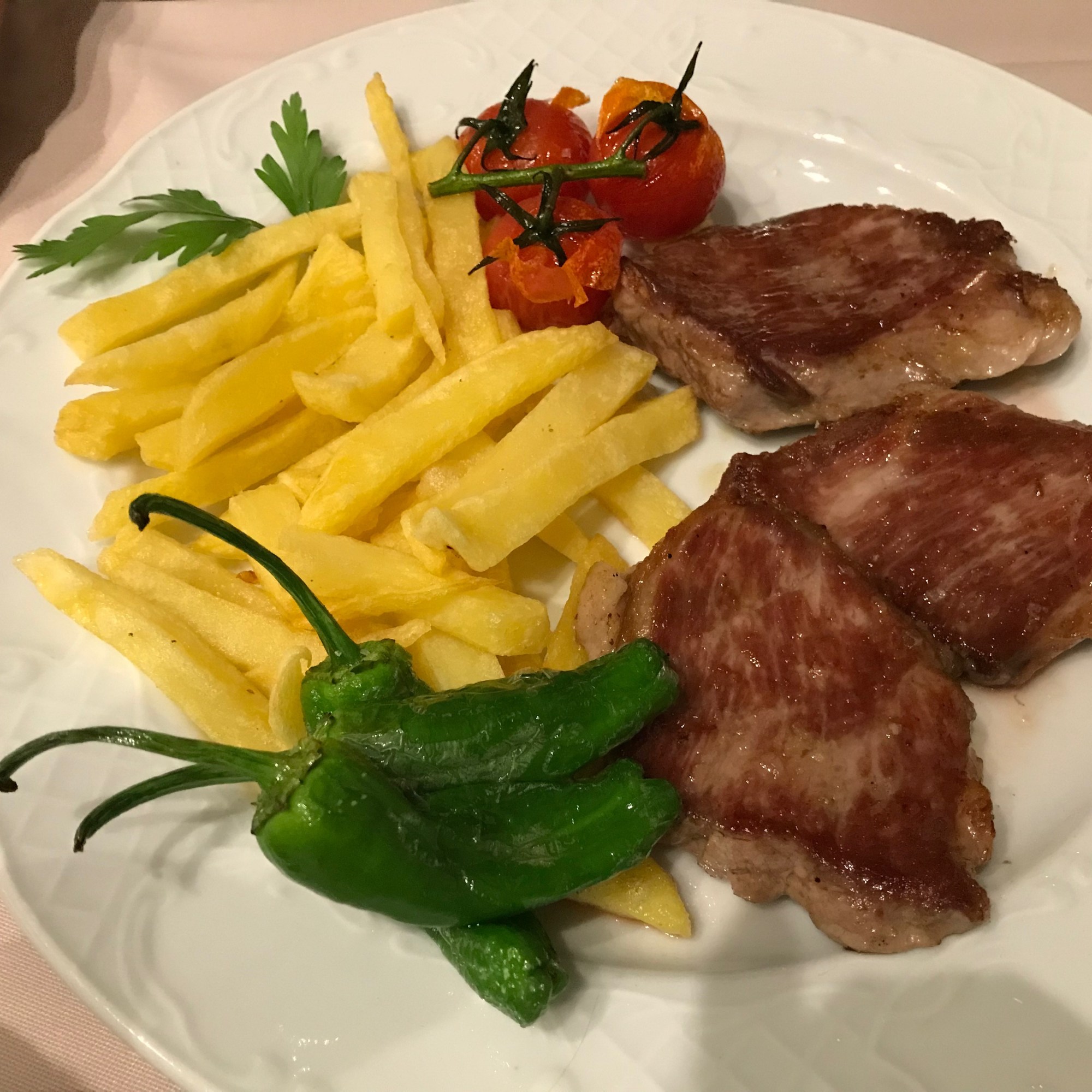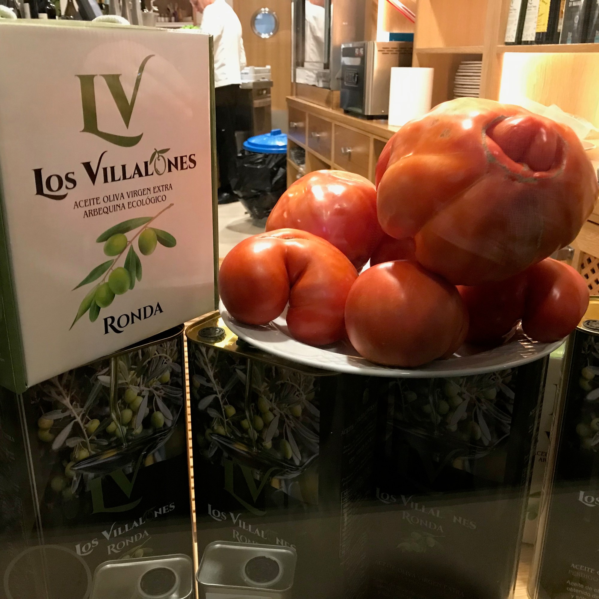 We walked into Ronda that night, a 20 min. walk from the camping. (We decided against the bikes since the road back is a steep one going up, but we did take a little light with us since you have to walk an unlit road with quite a lot of traffic). We walked till the edge of the town, and chose restaurant El Zucio just outside the first gate of Ronda. It turned out to be the right choice, the organic tomatoes with olive oil were heavenly and also the Iberico meat and stew of oxtail was really good, and the service was attentive and friendly.