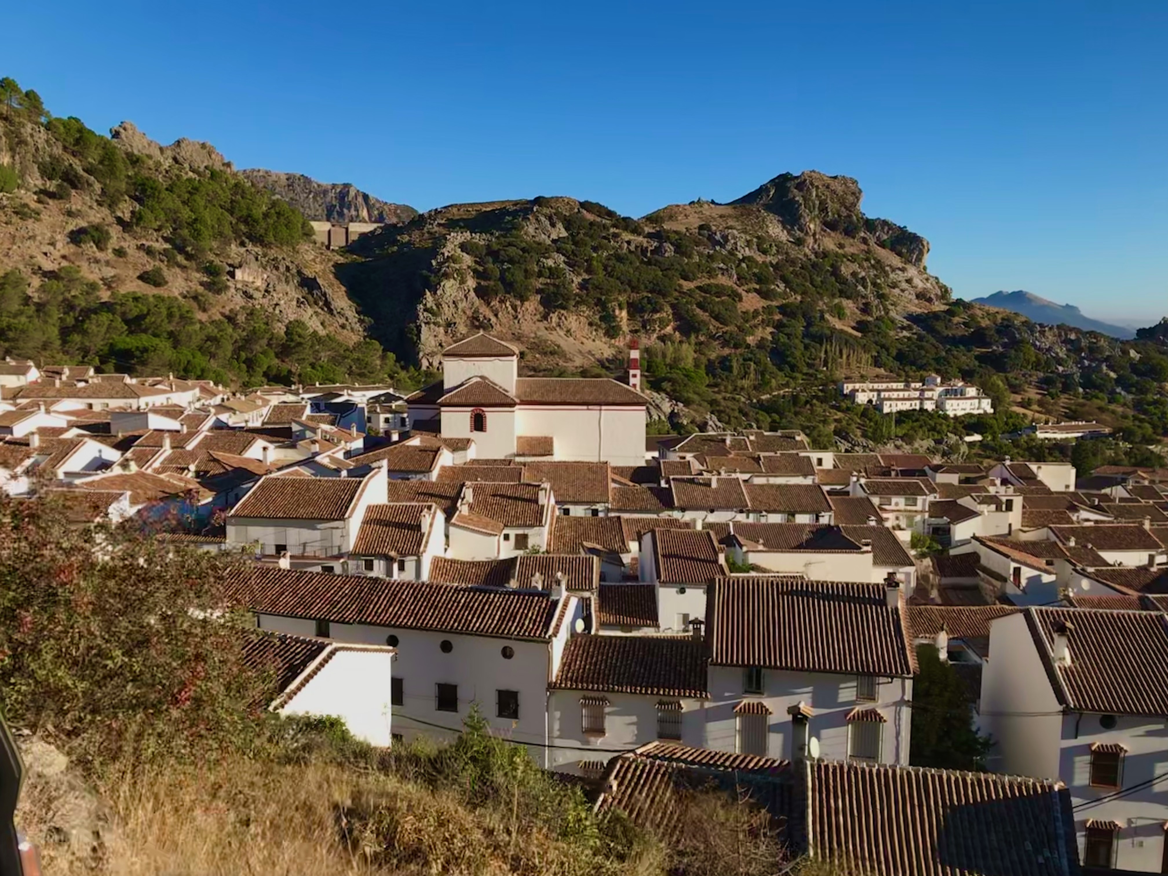 We drove to the top of Grazalema and parked our camper on the top of the village to have a late lunch. All the terraces were full since it was still a school holiday. We eventually chose Casa Martin, which was also full but we could reserve a table for 20 min. later, so we walked down to the edge of the town and had a drink there at a bar table of a restaurant. The tapas at Casa Martin 1920 were really good and innovative, incredible how you can offer such good food out of just one little oven!! We did not take the hot pot stews, but they also looked really good. It is a small but really friendly and good restaurant! For dessert we chose a piece of pie and a tea and coffee at the Cafetaria Rotacapa pasteleria a bit further in Calle Las Piedras. All the cakes and pies are homemade and really good!