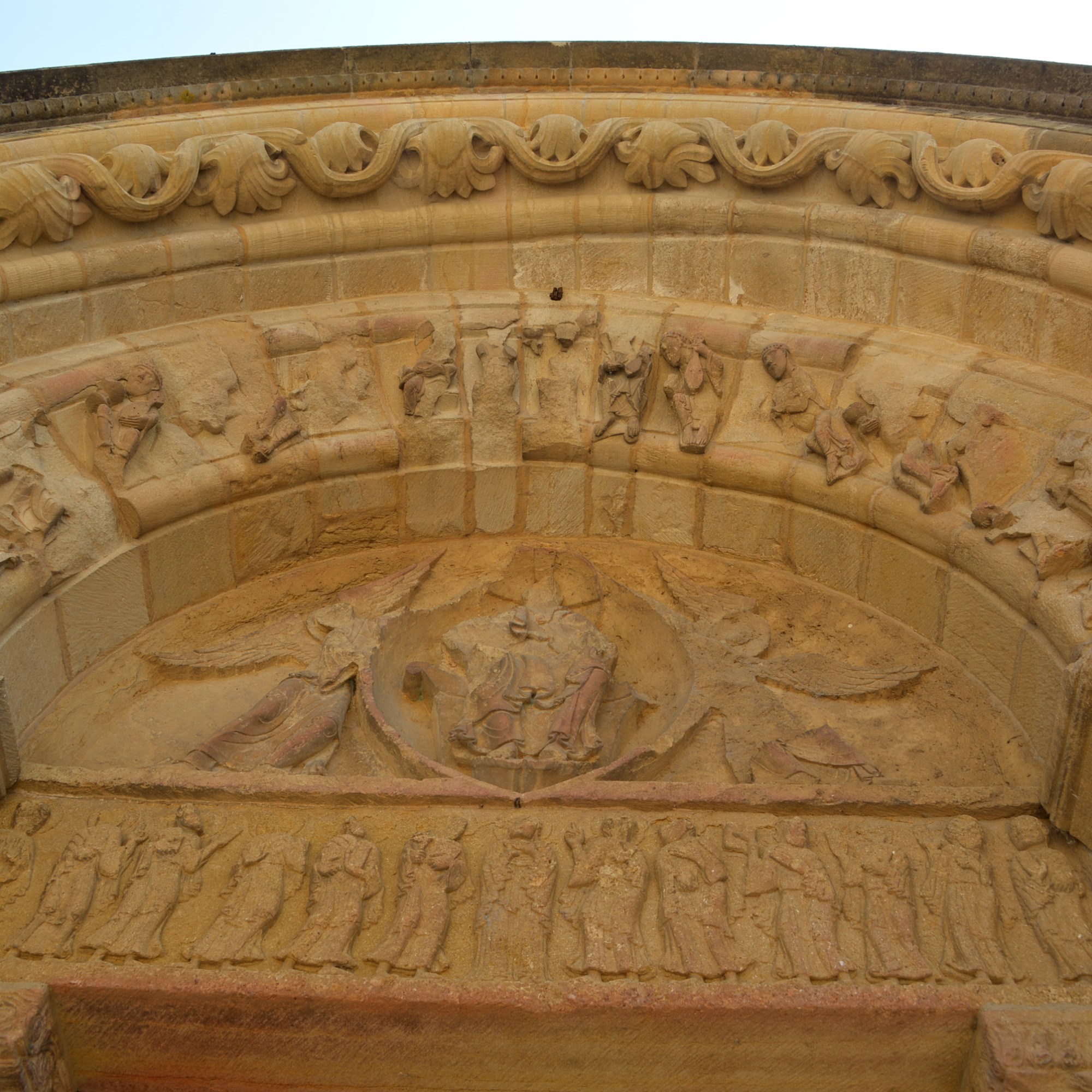 The last stop before Paray le Monial is in Montceaux-l’Etoile with its single nave church constructed around 1130. It was previously ministered by the monks of Anzy-le-Duc. The church lost the biggest part of its apse in 1777 when a burial chapel with rococo decoration on the inside was added for Abel de Vichy and his wife. The western facade with its portal is preserved with beautiful carvings. The lintel and tympani are carved out of one stone.