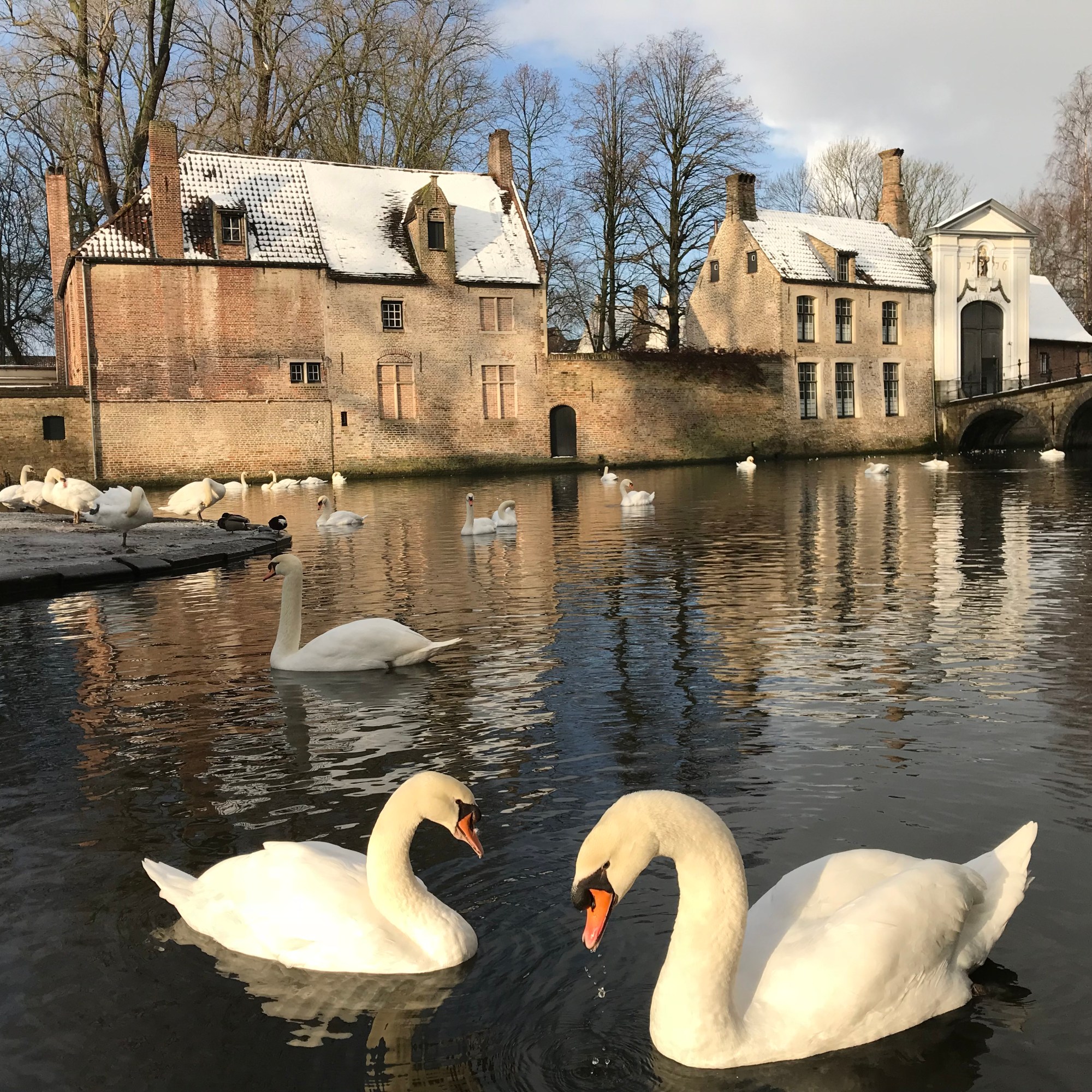 Visit the Beguinage and the lake of love with its iconic swans. The Beguinage is open between 6:30 AM and 6:30 PM. I spring the swans build a nest next to the water, and it is also a stop for the horses who pull the horse-carriages. So the kids can get up close to the swans and horses here.