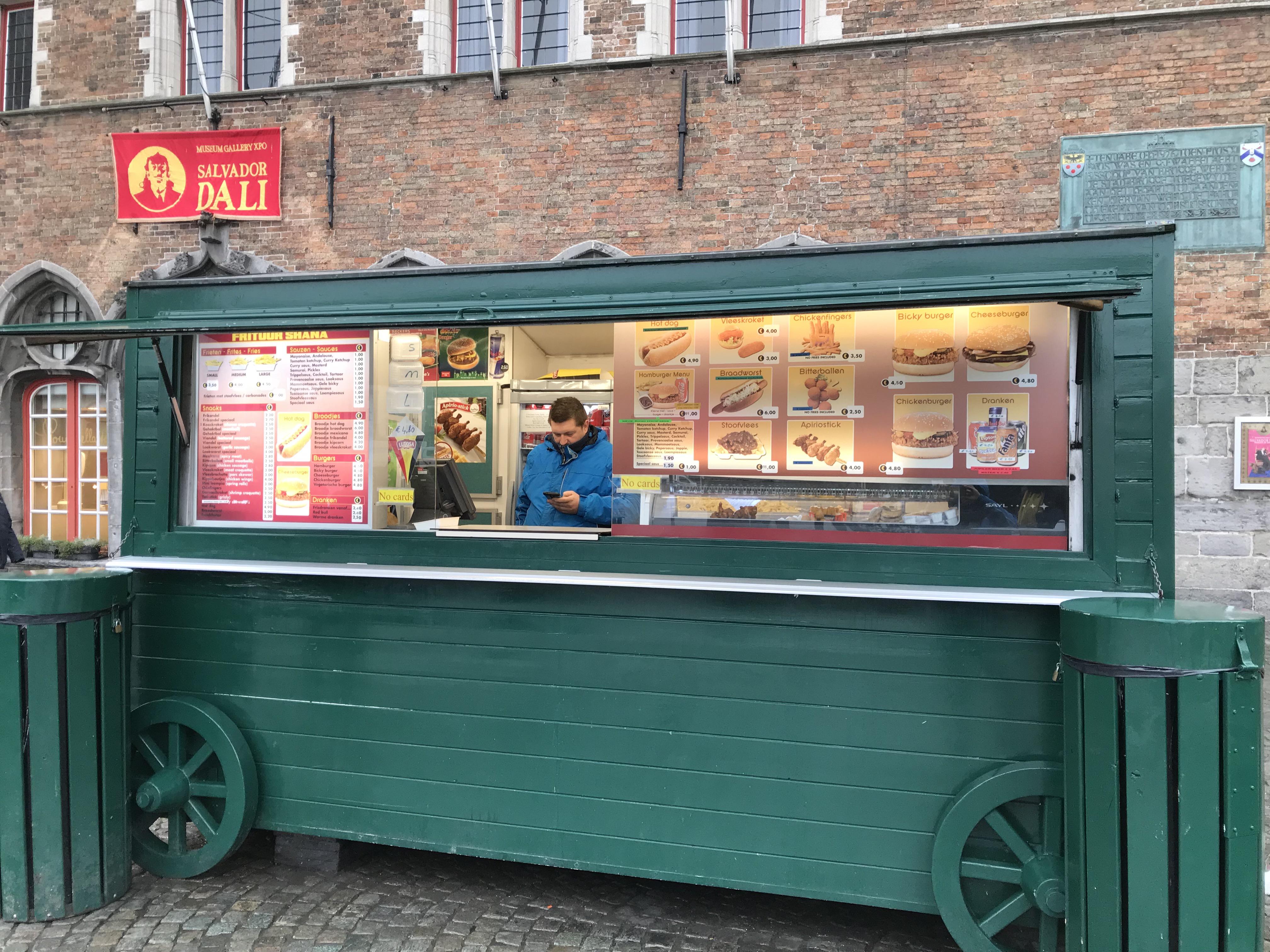 For the best ice-cream in Bruges (after a boat ride or a horse-carriage ride) head to Gelateria De Vinci, choose a donut from the new donut shop Hill’s Donut shop, both in the Geldmuntstraat, a waffle at Otto’s waffle atelier or Lizzies waffles. Eat French fries from one of the food trucks on the main square.