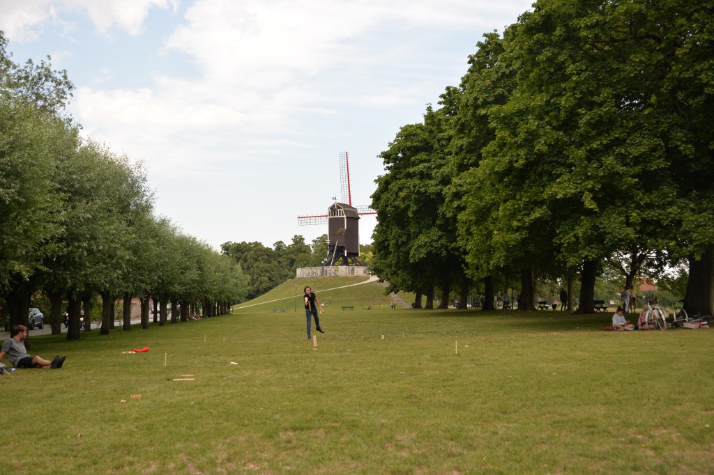 The birth house of one of our famous 19th century poets, Guido Gezelle, boasts a beautiful garden, where it is nice to sit in the grass on a hot day in the shade of the impressive trees and maybe play a game. And just next to the windmills you find one of the 14th century city gates, the Cross Gate. Here you can tell the story of how the gates had to protect to city from armed attacks.