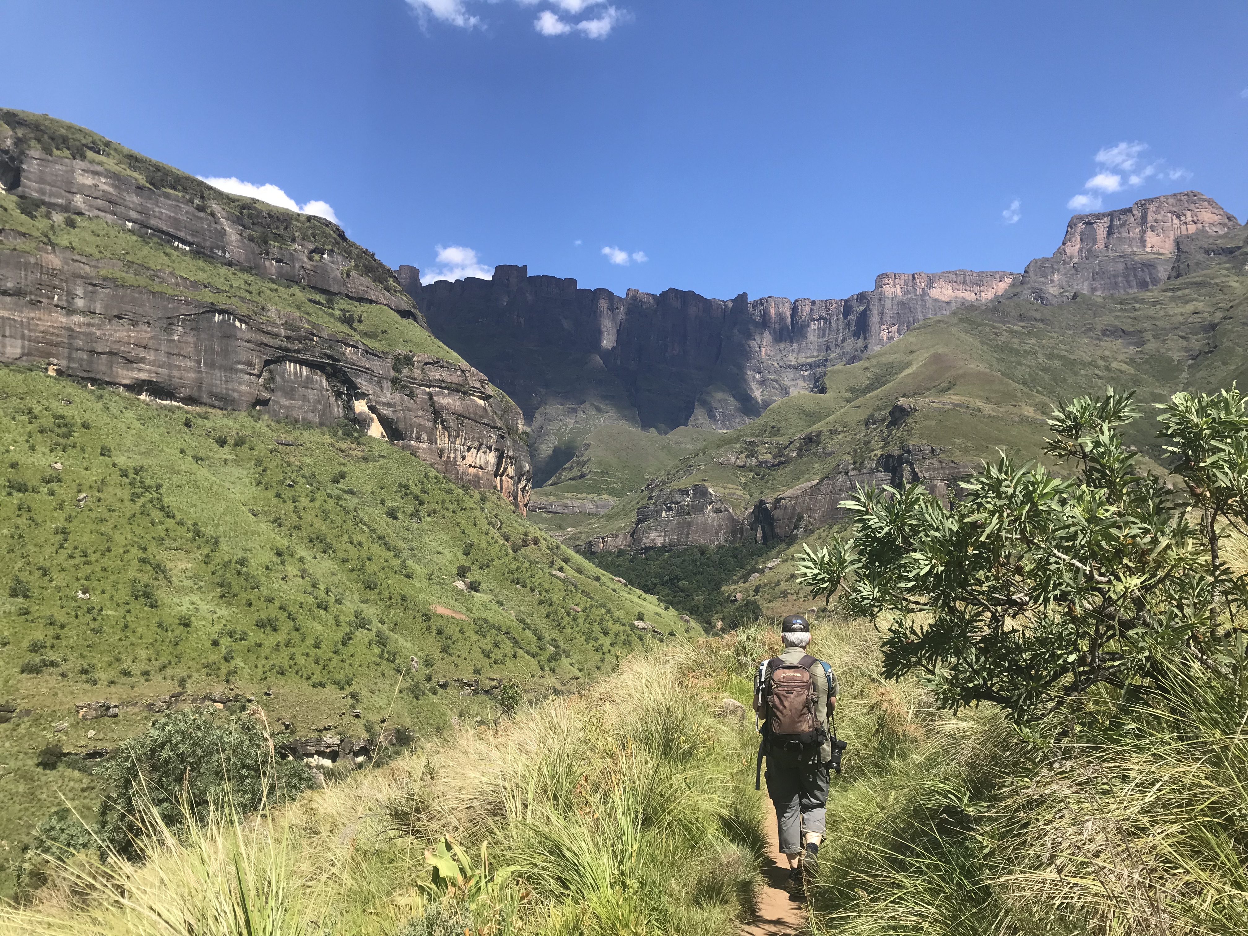The next morning we checked out at the Elephant coast guest house in Saint Lucia and set out on the road to Royal Natal national park, Northern Drakensberg. We chose the route via the highway N2 to Durban and from there the N3 to Bergville. Be aware that between Durban and the exit to Bergvillle there are no petrol stations along the highway. So best fill up the car around Durban if you are low on petrol. Just before the exit to Bergville, we stopped at the Truck stop where we filled up the car with petrol and had lunch. We both took a chicken salad that costed only R 45, about 2 euro, dirt cheap. We arrived at the Montuse mountain lodge near Royal Natal national park around 5 PM.