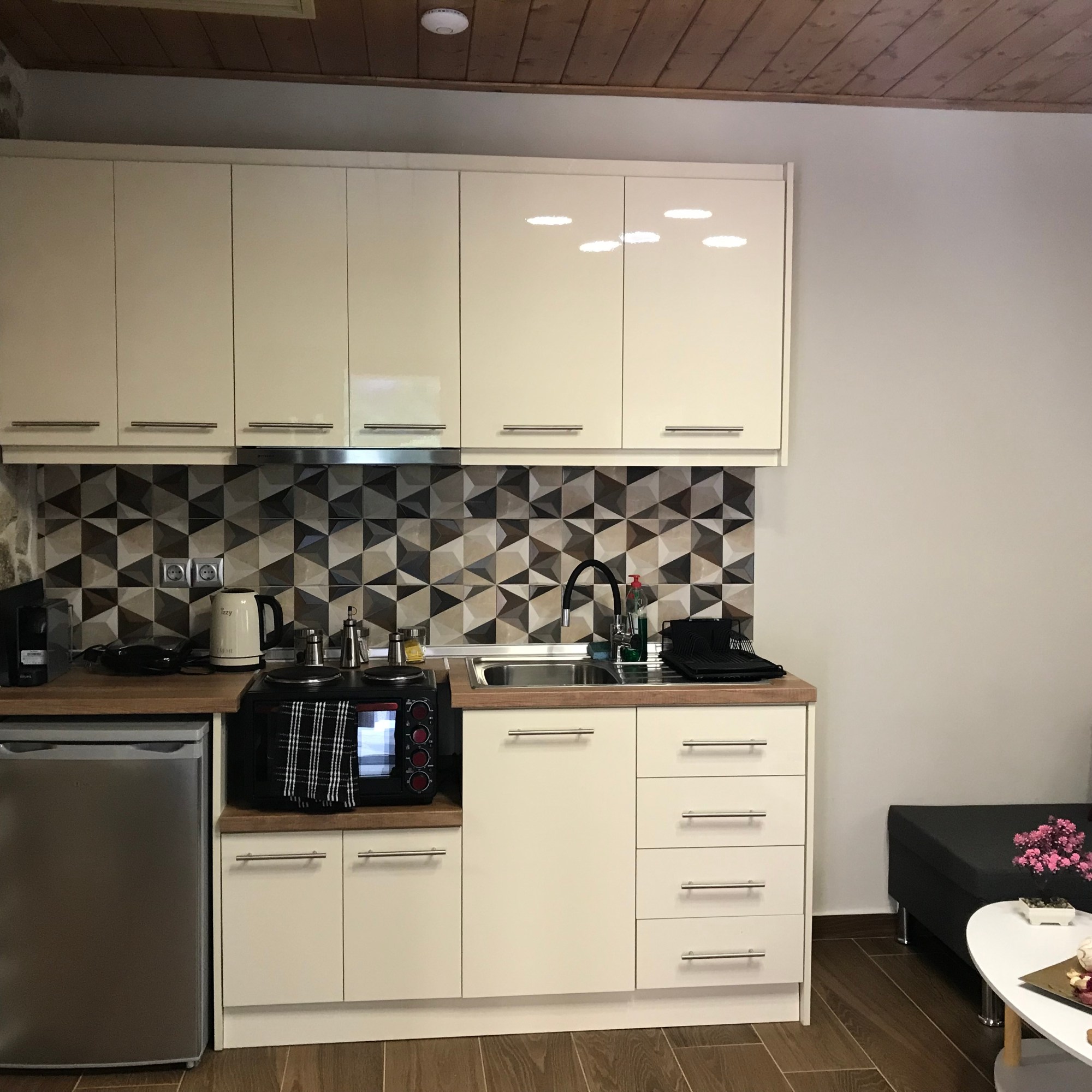 From Vergina we continued our way to Kastraki near Meteora, were we had booked the Dream Nest Meteora appartement. We parked on the private parking and were welcomed by the owner, who openend the door for us. In any other case you can find the key in te key holder. The appartement is beautiful with a fully equipped kitchen and a living corner, an outdoor seating area overlooking the rock formation and the village. In the appartement a bottle of wine, a bottle of lemonade and a fruit basket welcomes the visitor.