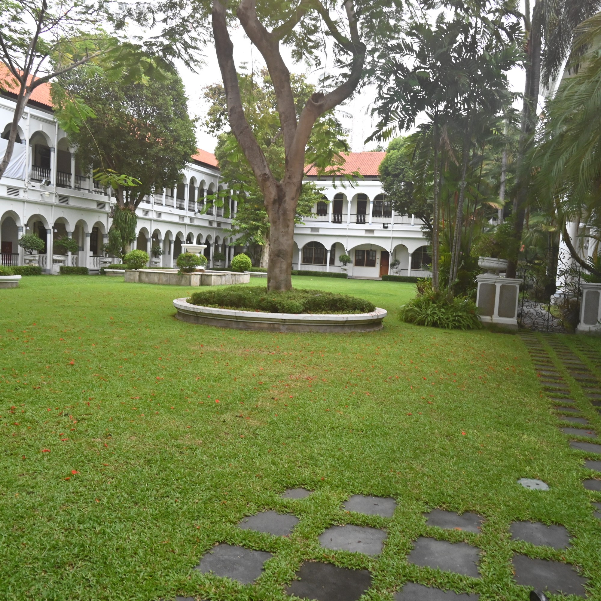 We checked into the colonial style Majapahit hotel in the centre of Surabaya. A hotel built in 1910 as the Oranje hotel, by the Iranian Sarkies brothers who also built The Raffles and The Strand in the late 1800. We had afternoon tea at The Strand in Rangoon almost ten years ago in 2014. The hotel changed names during the Second World War when the Japanese forces took over the hotel and re-named it Hotel Yamato. After independence in 1945 the hotel was named Hotel Merdeka or hotel of Independence. When the Sarkies returned to manage the hotel in 1946 they named it L.MS. Hotel in memory of Lucas Martin Sarkies, the founder. Since 1969 the hotel is named Majapahit after the kingdom. It is now part of the Accor group as a boutique hotel. We had booked a standard room but got an upgrade to a suite, that boasts an extra living area with a sofa and a desk.
