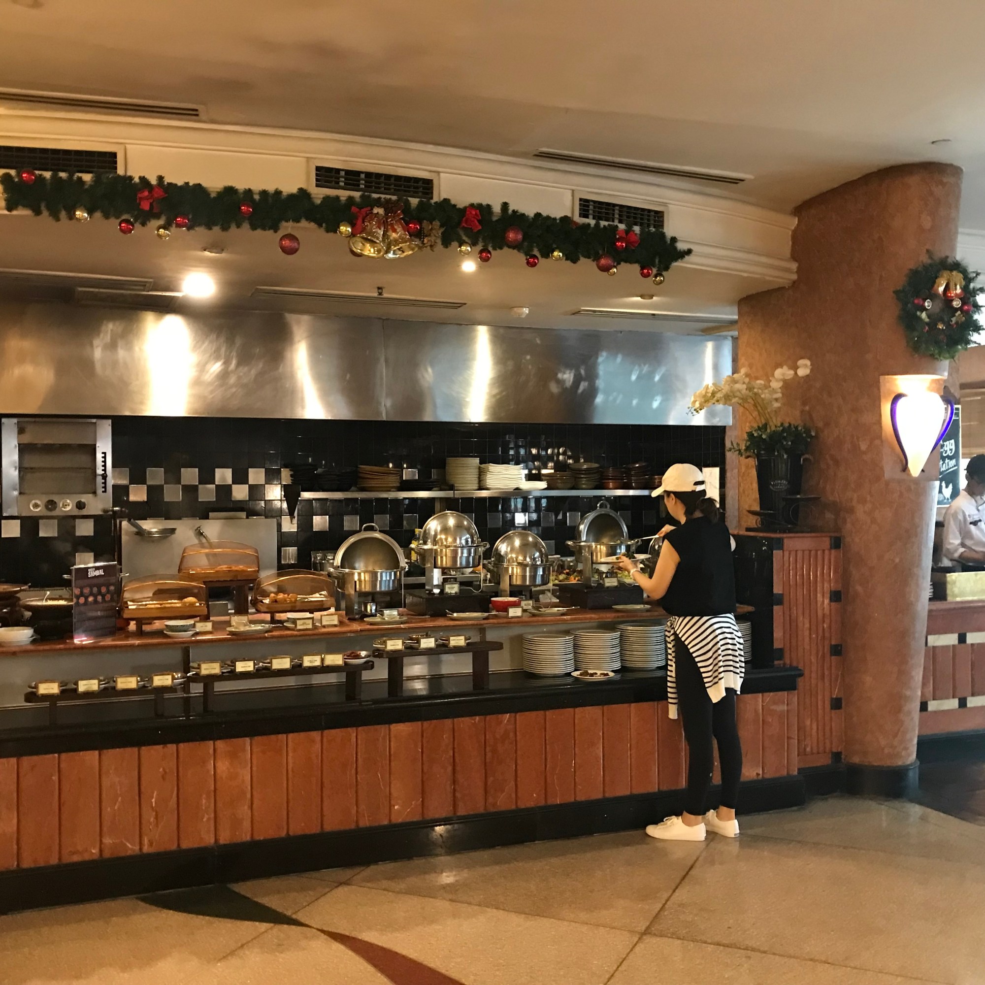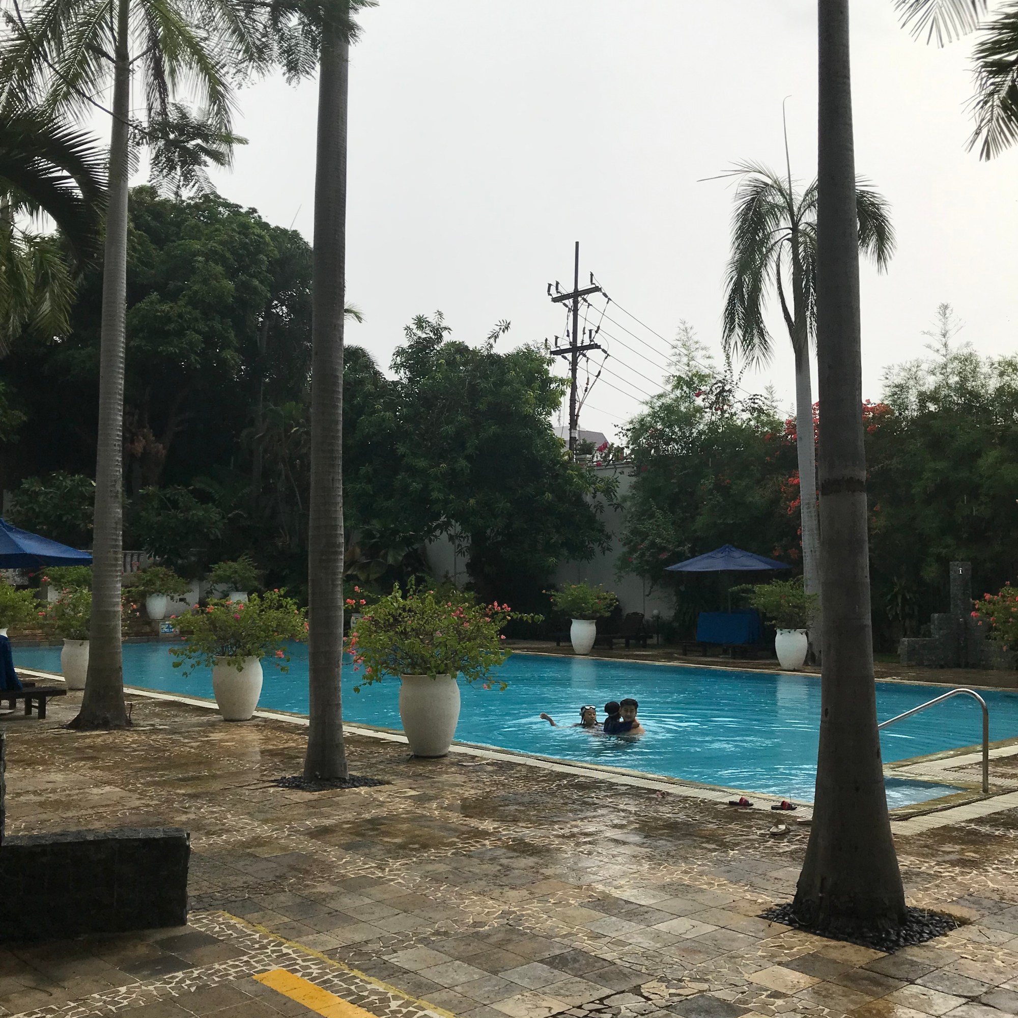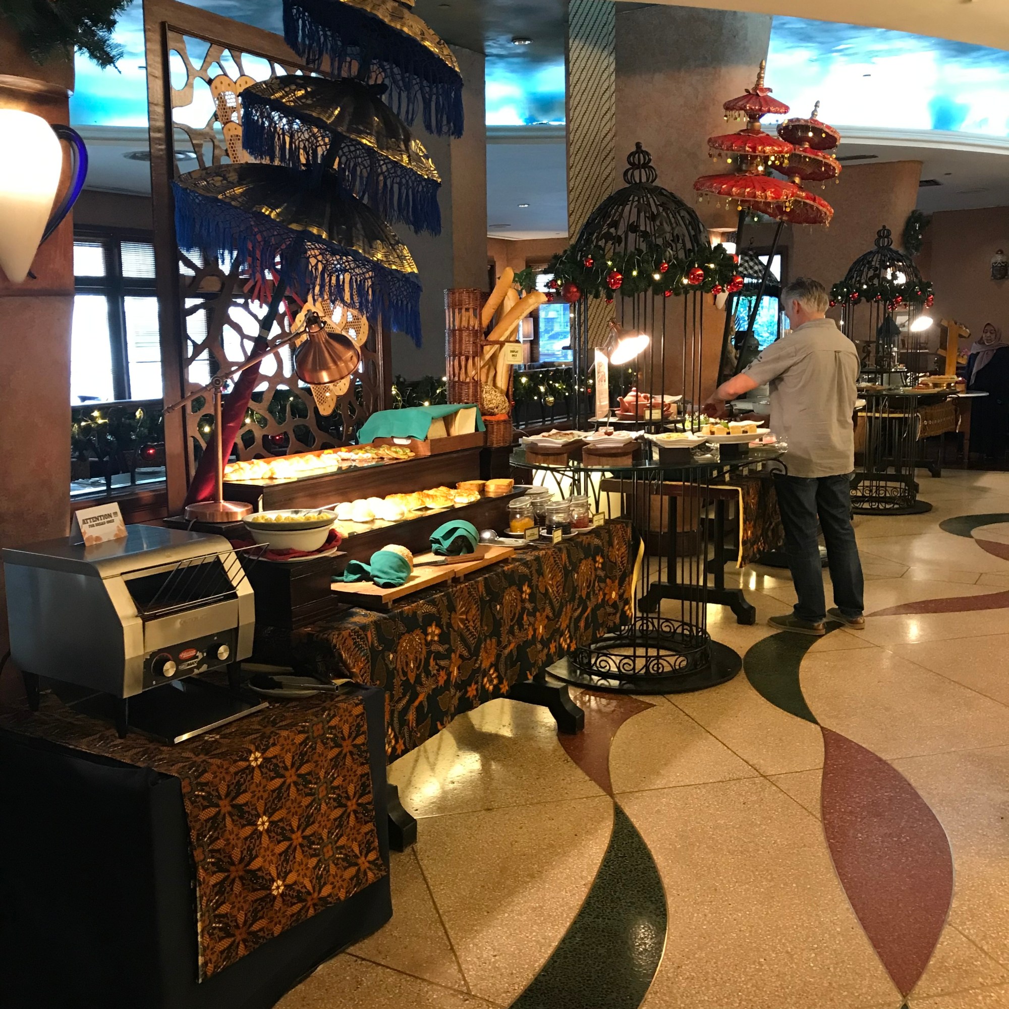 The next morning I went to swim 40 laps in the wonderful 25 m long swimming pool of the hotel. I was the only female swimmer, the rest were all Indonesian men, who I guess were not staying at the hotel but could use the swimming pool. My husband used the gym, but found it too hot since the aircon did not work and you have to book the sauna and the whirlpool in advance so they can heat the sauna in time. We then went for breakfast, which was really fantastic. A very large buffet with a broad range of Western and Asian breakfast dishes.