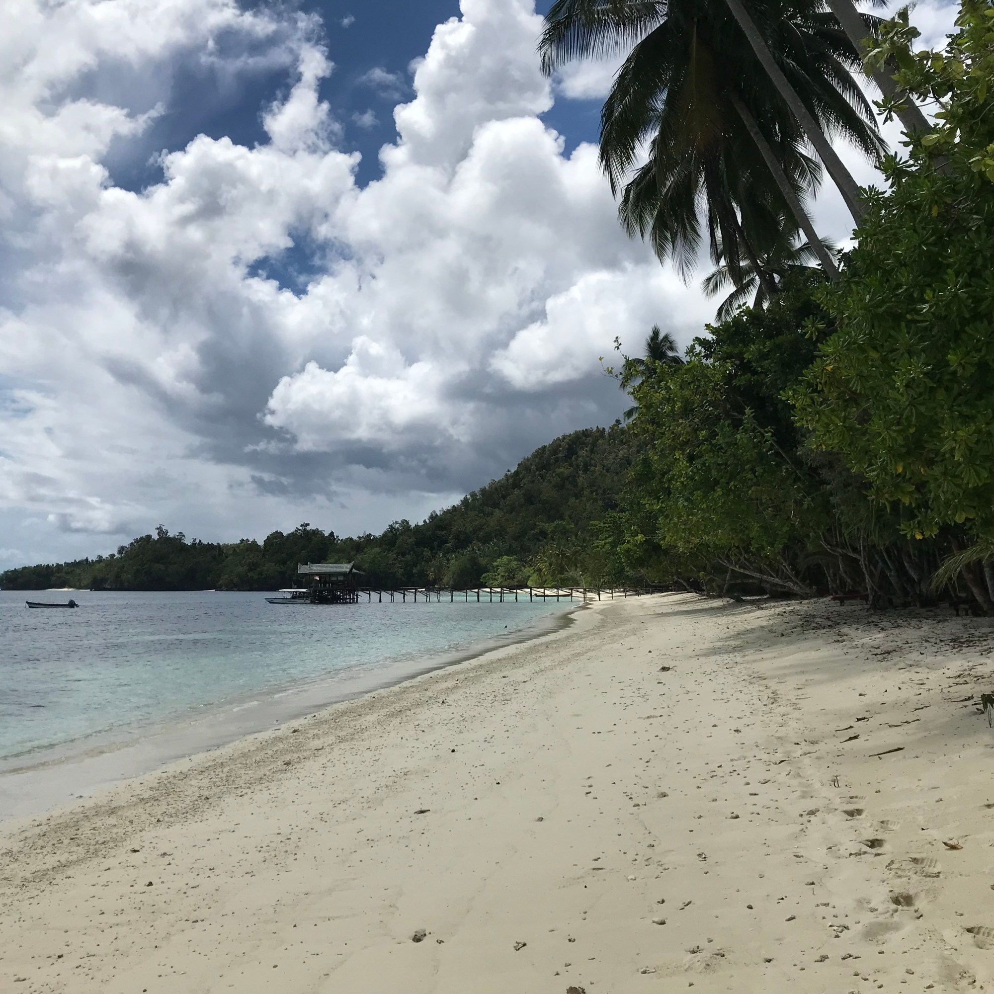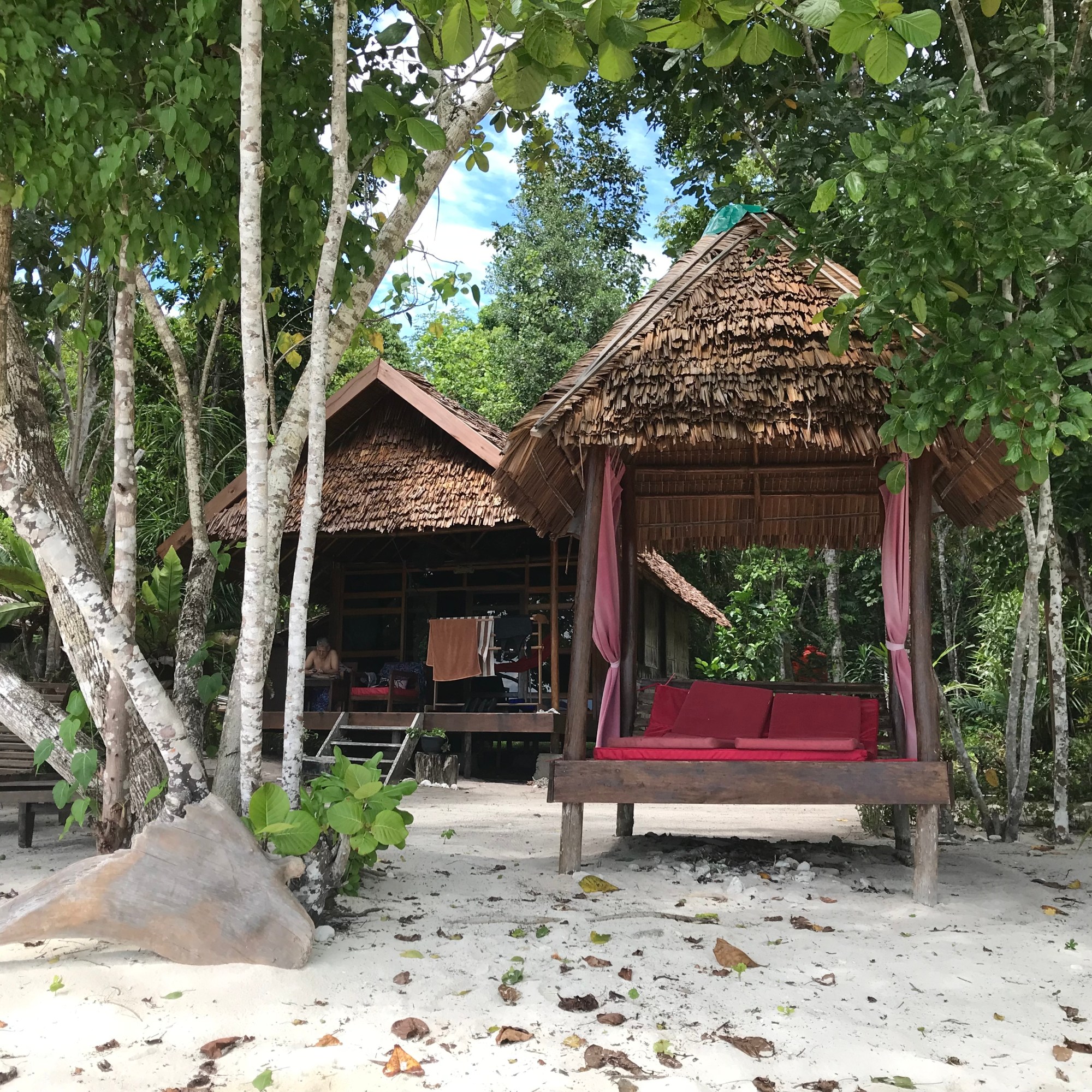 We had 4 hours between the flight from Surabaya to Jakarta and our flight from Jakarta to Sorong. We headed to the Garuda desk to have our seats changed since we hadn’t been able to check in for the second leg of our journey, and had to take two middle seats behind each other. The very nice lady was able to unblock the access on the flight and change our seats to two aisle seats next to each other. I ended up all alone with three seats so my husband moved and we shared three seats between the two of us, which is comfortable for a night flight. The flight time between Jakarta and Sorong is 4 hours. The plane leaves Jakarta around midnight and arrives in Sorong at 6 AM, there is a two hour difference between the two cities. We got a snack (a sandwich) and a drink early during the flight, the cabin then became dark, and I was able to fall asleep. One hour later, the cabin crew put all the lights back on, and started to hand out a warm meal with drinks, between 2 and 3 AM! Many people who had fallen asleep were all awakened by the crew to ask if they wanted a meal. After that the cabin stayed illuminated. So it was hard to catch enough sleep during the flight. The flight arrived on time and our luggage arrived as well, hallelujah! ( we would later hear later that one of the tourists in the resort never received her luggage during her stay)