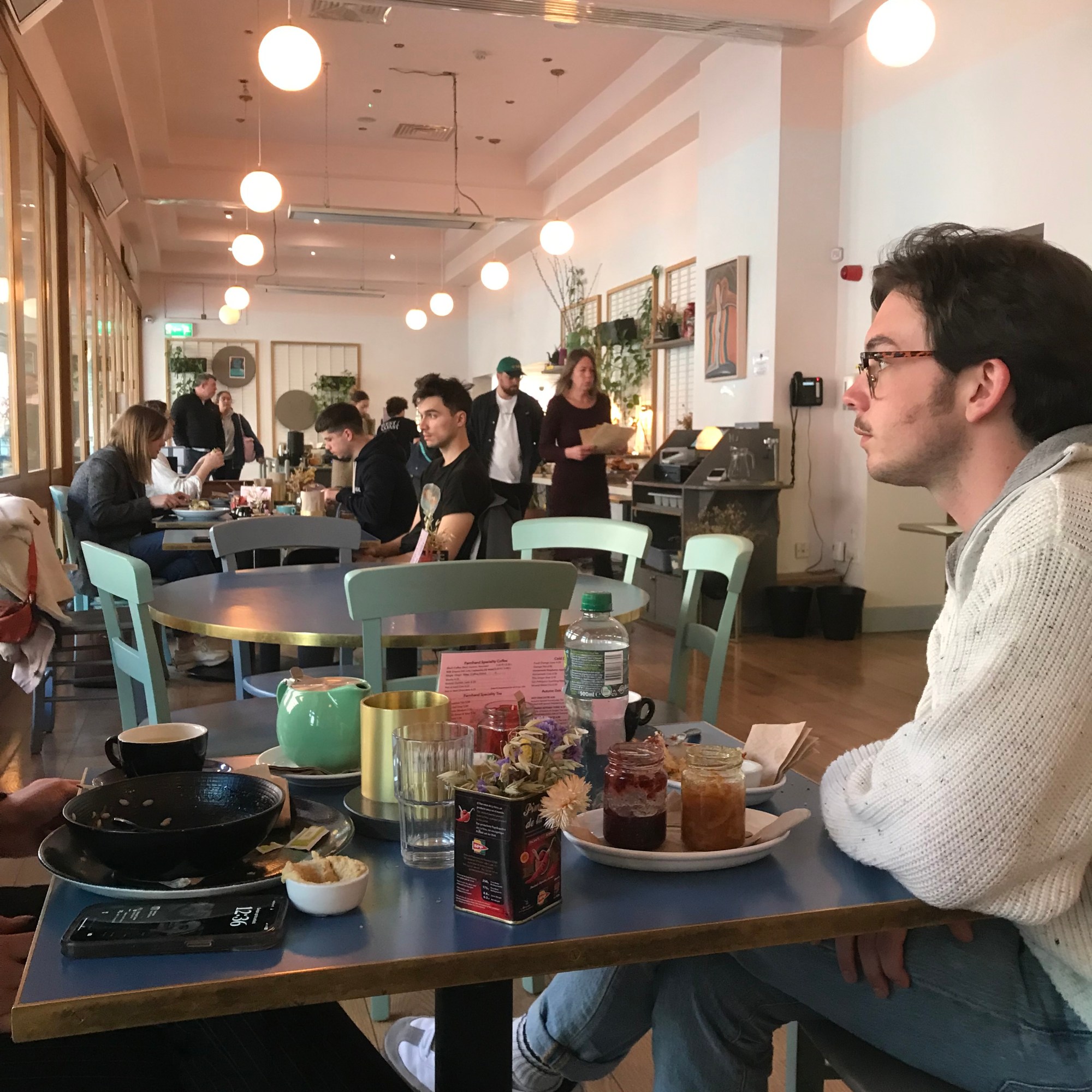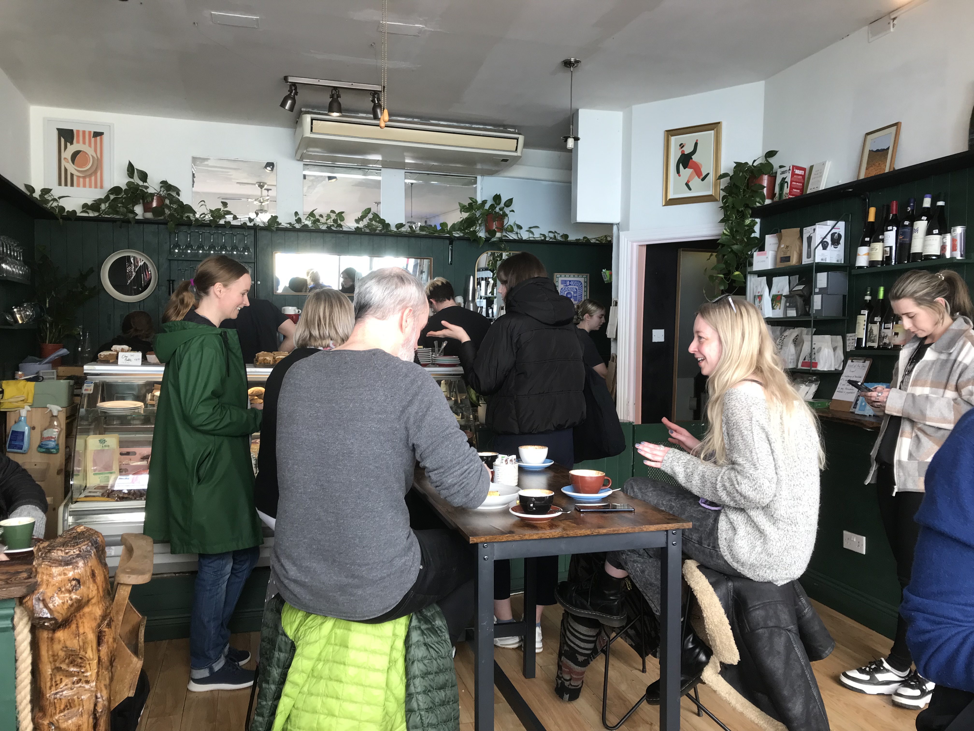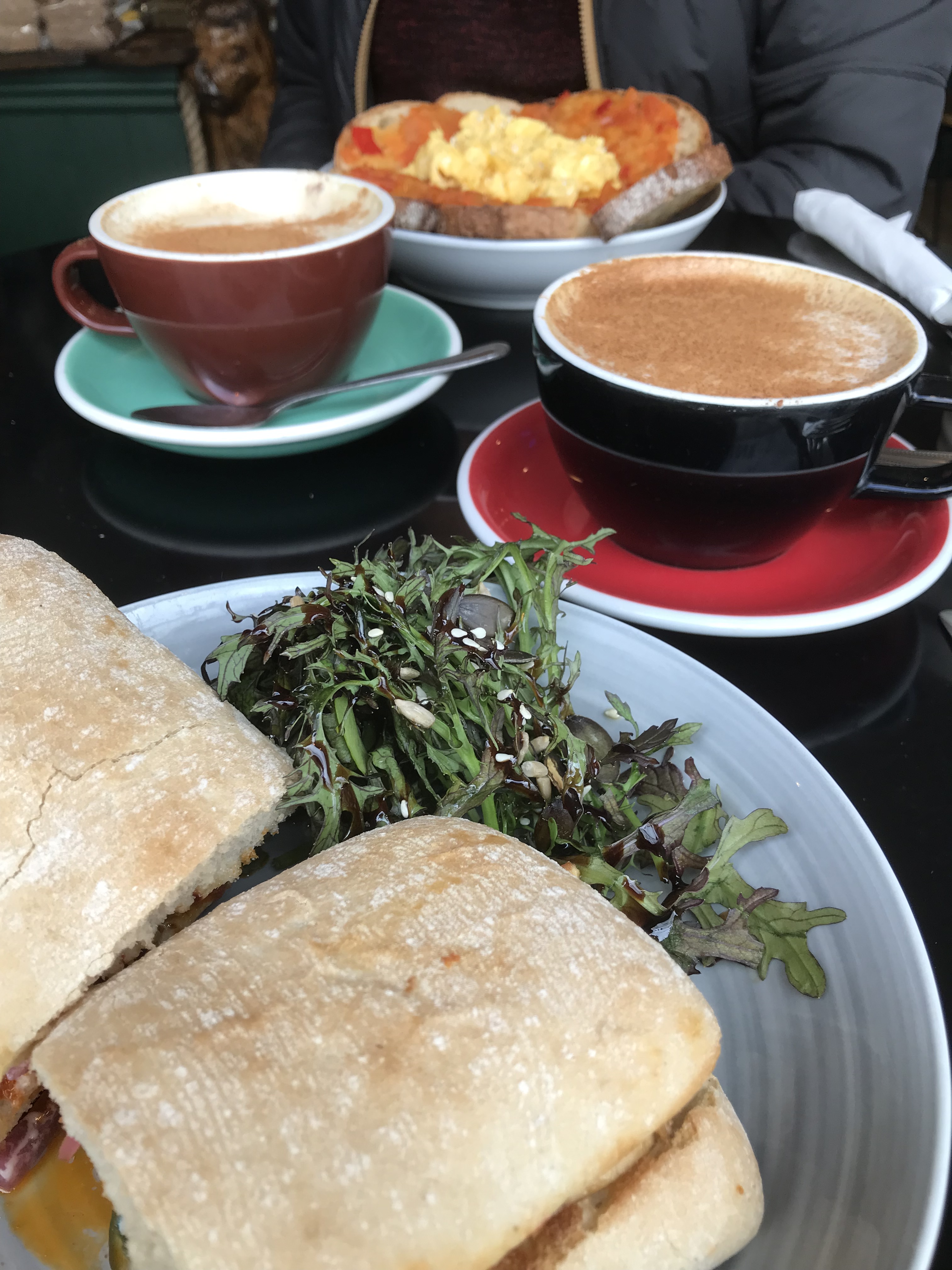 They car did not have a gps but we managed to connect our smartphone to the screen of the car, and could use waze or google maps on the car system as a gps. We drove to Galway and made a stop after about 1,5 hour at the town of Athlone, where we had lunch at a small spot named Fine. They have a small menu with all day breakfast, sandwiches or a Buddha bowl, and some great looking cakes and pastries. Their coffees and lattes are really good. We both had a wonderful Chai Latte, I had a Banh Mi sandwich and my husband had scrambled eggs on toast.