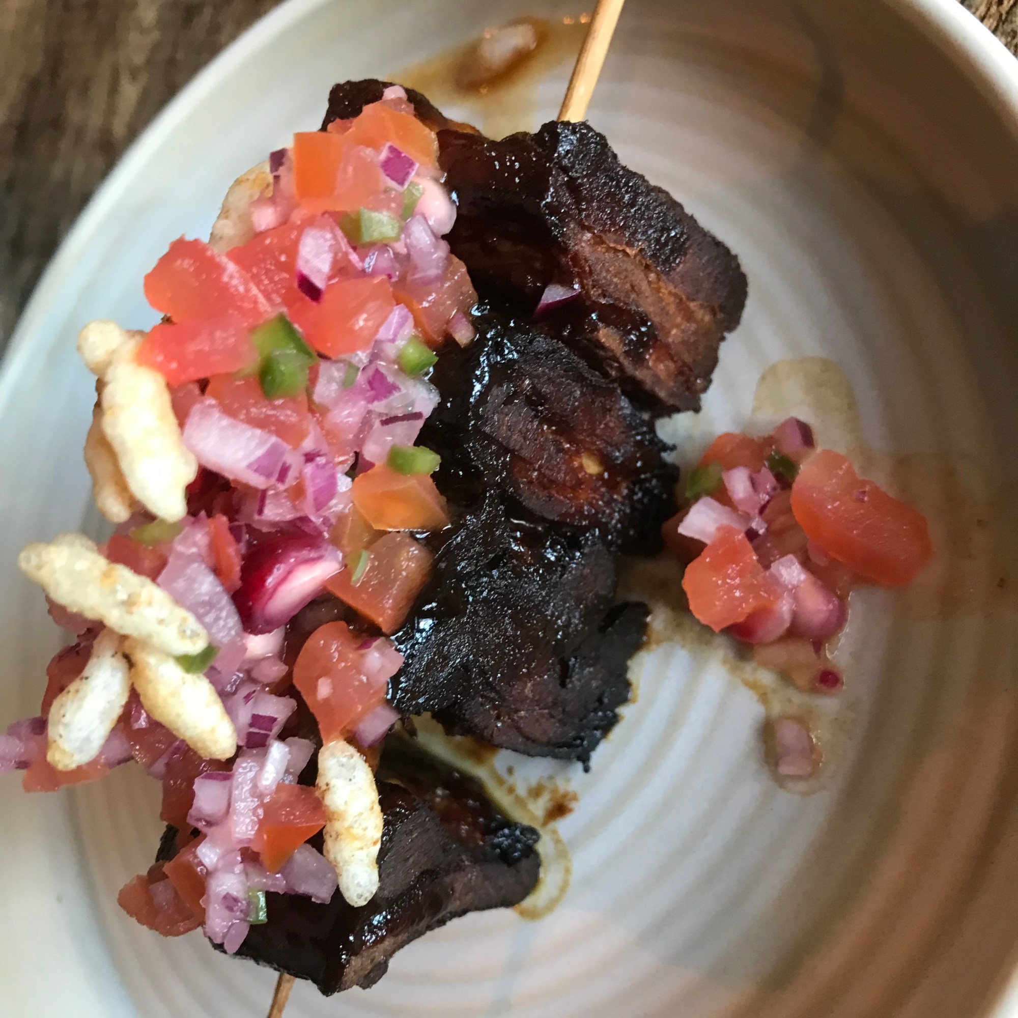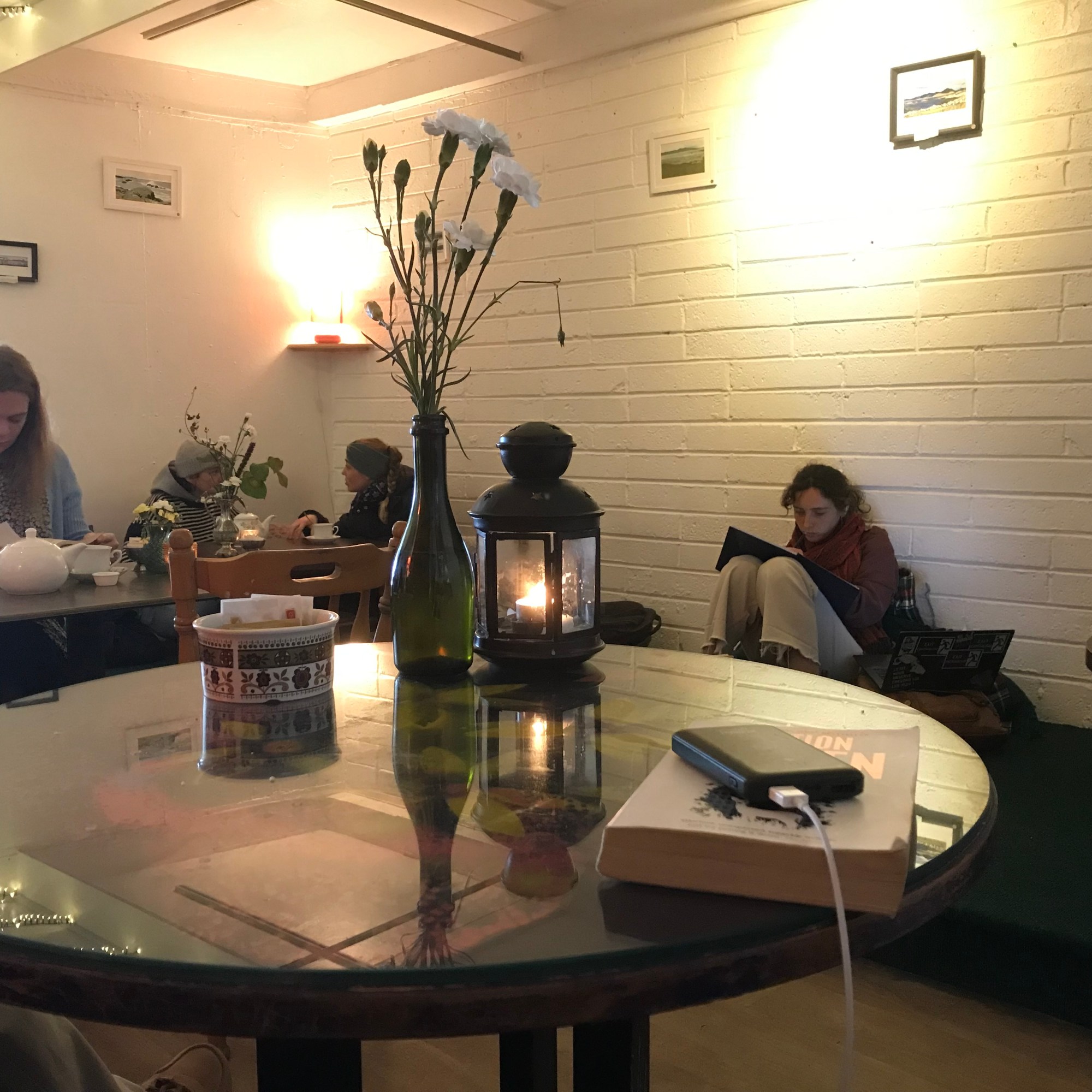 I had booked us a table at the Ruibin bar and restaurant in the bar section, where they offer a sharing menu. We decided to change clothes and go out to discover Galway. It is only a 5 to 10 minute walk to the tourist centre of the town from the hotel. The centre is mainly comprised of one street with bars and restaurants on both sides, buskers on the street, some more talented than others, and shops with Irish stuff to take home. It was sunny and the street was packed, it must be a madhouse here is summer. We had some time left before we were expected for our dinner, so we decided to have a drink first. We tried some of the bars on the main street, but were not really taken away with any of them, they were either too full, too loud or everyone was just watching football games. So we crossed the river to maybe already have a drink at The Crane Bar where I planned to go after dinner, but it was almost empty. So we went for a tea and coffee at The Secret Garden. I ordered a small pot of tea, which was really large. I managed to only drink half of my tea before it was time to go. But it is a great spot to while away an hour or two with a book and a pot of tea or a coffee, they also serve cakes. There is a cute garden terrace at the back, for which it was too cold. We walked to the Ruibin restaurant and bar and were caught off gard by a sudden heavy downpour while the temperature also dropped dramatically. We were happy to sit down in the warm restaurant which overlooks the bay where a rainbow appeared.
