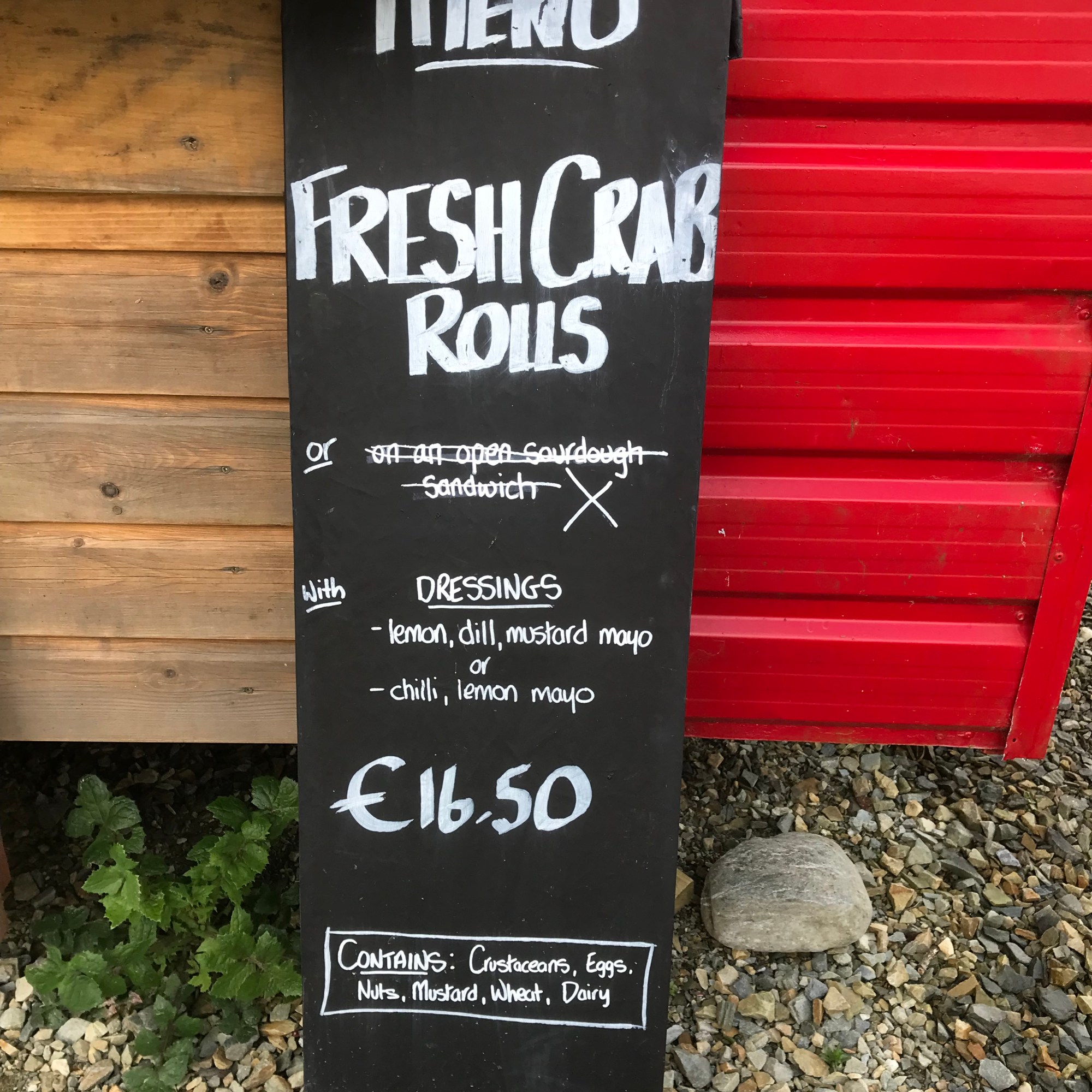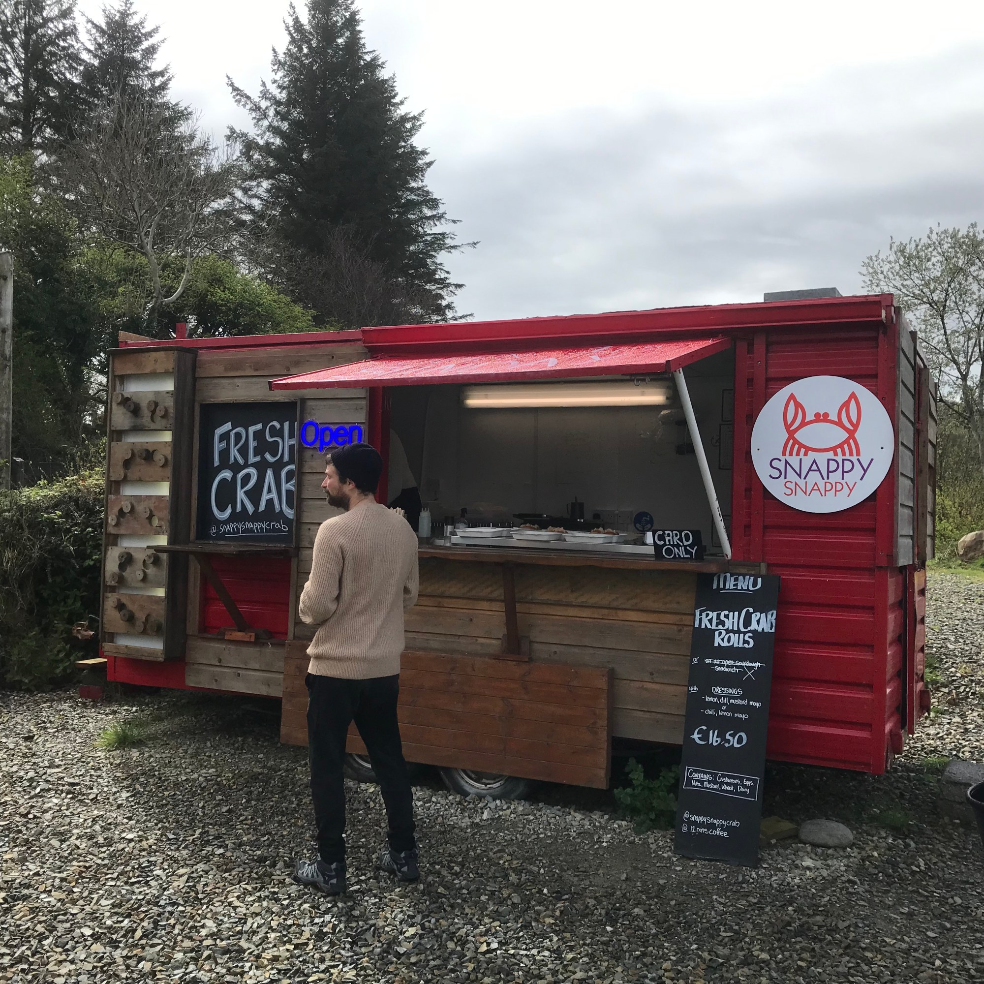We took the car and continued the loop around Connemara park in the direction of Clifden, when we saw a little foodtruck on Dooneen Pier, Ballinakill bay in Letterfrack, just outside the visitors centre of Connemara park, on the edge of a lough. Do stop here, it is the best fresh crab I had in a while. Snappy Snappy food truck serves fresh crab rolls, on homemade Japanese style white milk bread rolls that they toast on all sides and fill with a crab mixture and some greens on the side. You can choose between two dressings, a mustard-dill mayo dressing or a lemon-chili mayo. We chose the first dressing, everything is served in recycled compostable packaging. The crab is caught in the nearby lough. It was a gorgeous lunch in all its simplicity looking out over the lake and the owner is super friendly and just listening to him explaining the dish makes you want to order. They are open on Saturday, Sunday and Monday from 12 to 5 PM or till they sell out! It was one of the best finds of our trip.