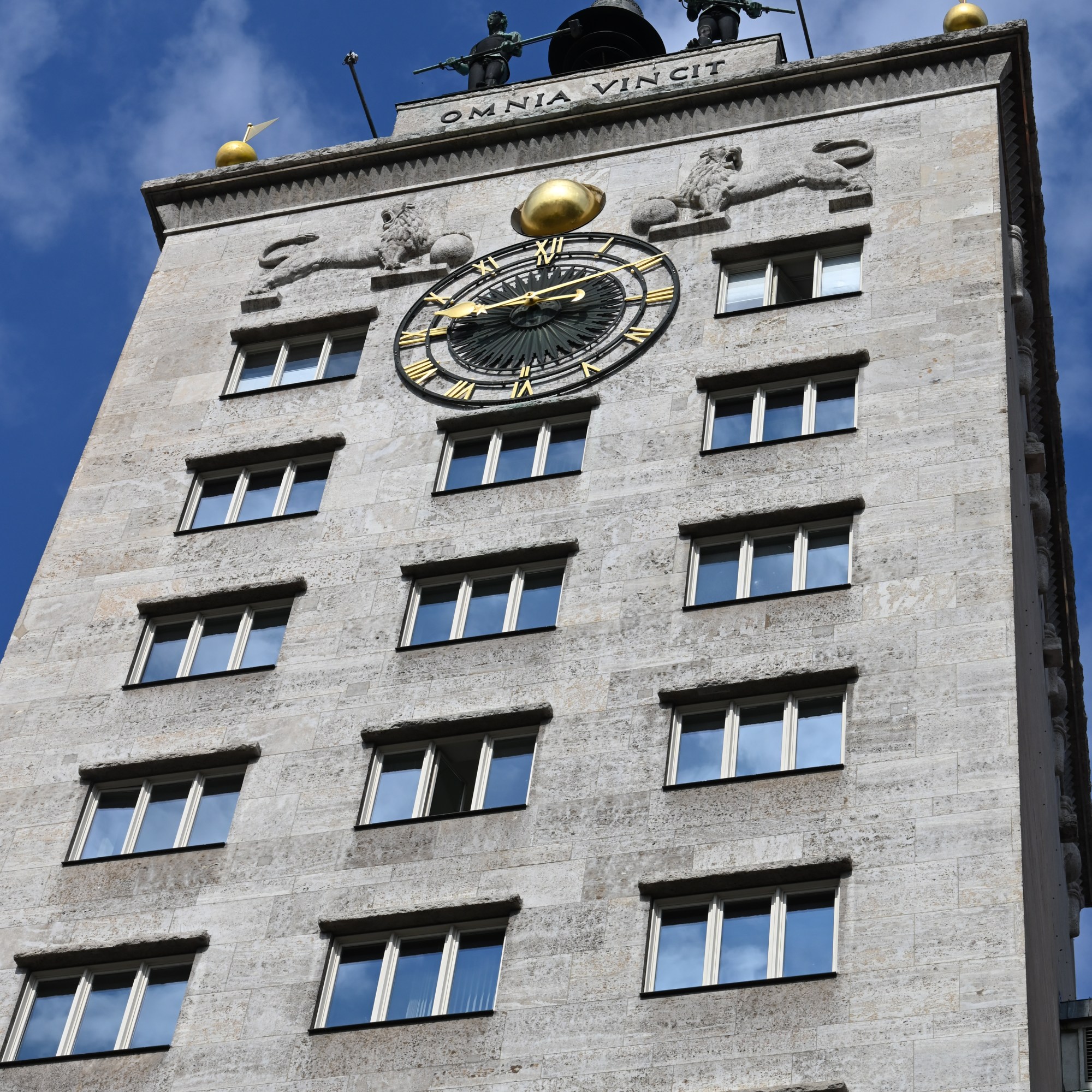On the Markt we enjoyed the rehearsals for the performances of the next evening. The Markt is dominated by the old City hall which is today turned into a museum. On the way to Saint Thomas church you cannot miss the Commerzbank in a restored building that used to be a department store that had to attract the rich with its golden facade.