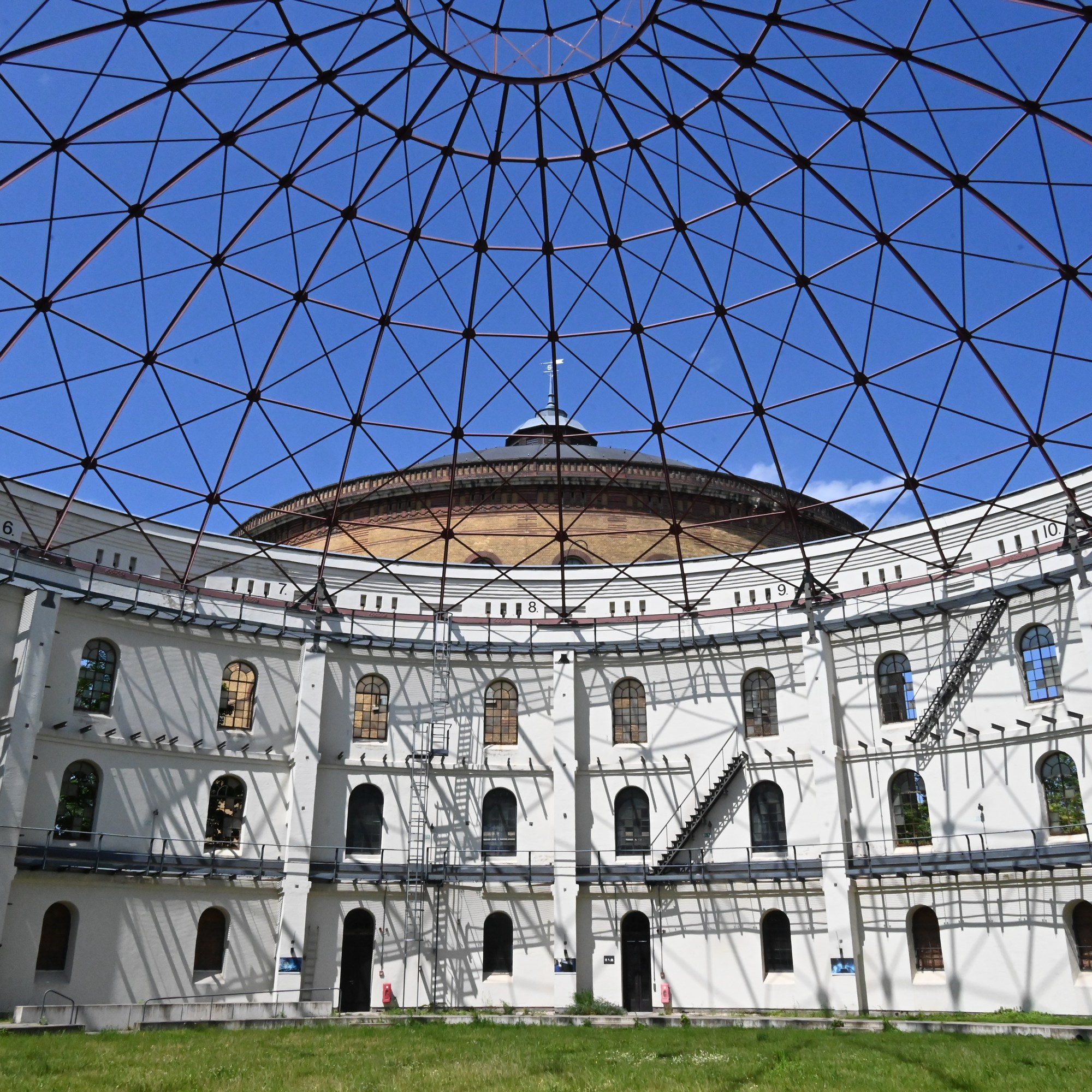 We walked back towards the Augustusplatz and took tram number 11 to the Richard Lehman Strasse and walked 10 to 15 minutes to the panometer, a former gasometer, now transformed into an art gallery with the works by Yadegar Asisi, an artist and architect born in Vienna. He is best known for his 360 degree panorama’s he realizes combining traditional drawings and paintings with computer 3D modeling which are exhibited in old gasometers. His latest work is the Cathedral of Monet, based on the impressionist paintings of the cathedral of Rouen by Monet. Asisi takes it a few steps further, not only did he train himself in impressionist painting, he recreated the square in front of the cathedral of Rouen, including the West facade of the cathedral, and the surrounding houses. He also brings several impressionist painters to life on the painting and a group of academics who used to criticize the new impressionist style of painting in the 19th century. This last group of people is not painted in an impressionist way but in a realistic way, since it was the more realistic neo-classicist style paintings that were allowed at the Salon of Paris at the time. He worked ten years on the painting for the 360 degree panorama. It is accompanied by sound and light effects and a music score composed for the work. Before entering the 360 degree panorama the exhibition shows a range of works by the multi talented and very intelligent painter Asisi. Before exiting you can see a documentary about his work where the artist himself talks about his inspiration and how he works. We were both pleasantly surprised by this exhibition and the artist.