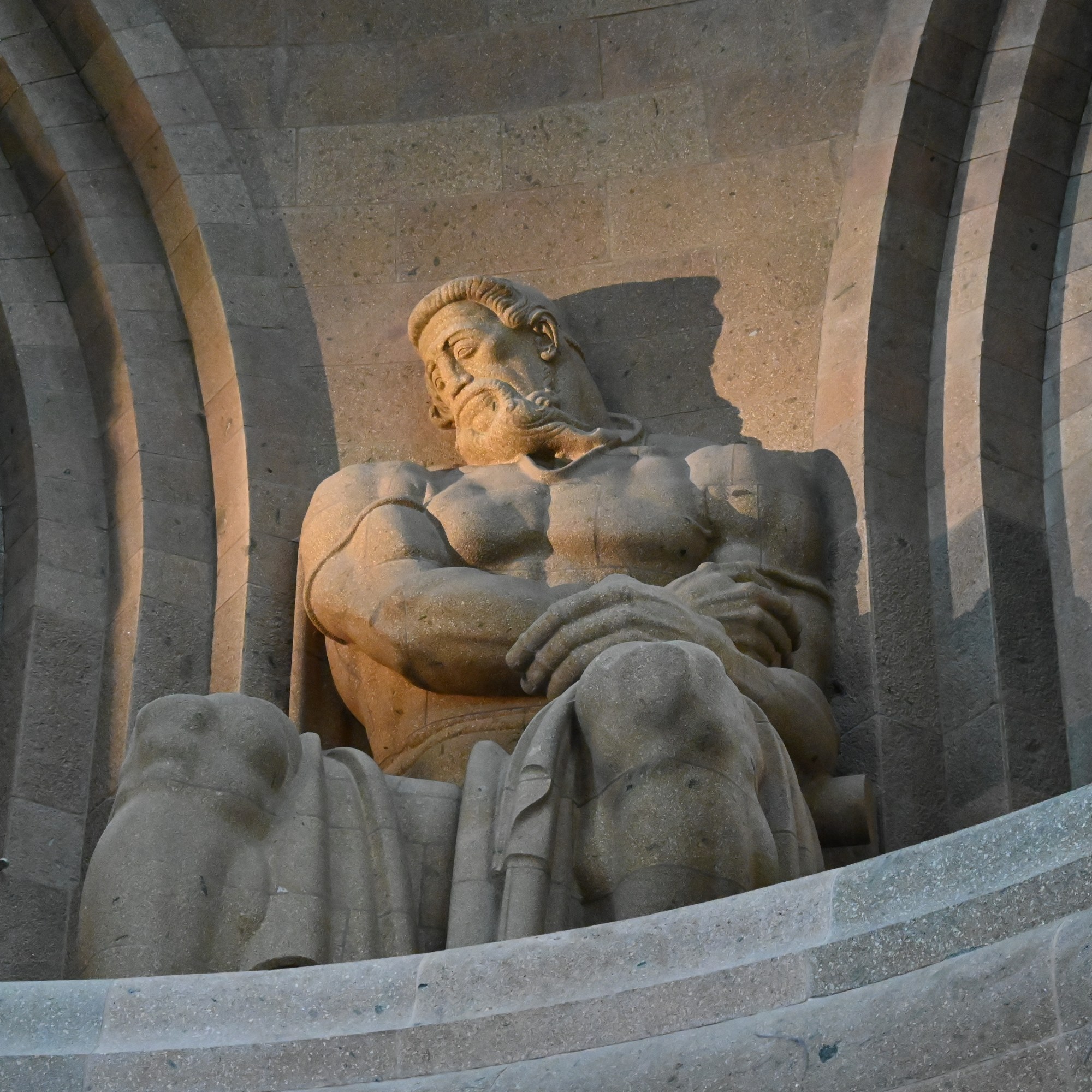 The next morning we took breakfast at 9:30 at Kändler Tea house in front of the Thomas church. We really enjoyed our breakfast this time, even though I had woken up with a kind of flu. We then walked towards Augustusplatz where we took tram 15 to the Monument of the battle of the Nations, a megaloman monument commemorating The Battle of Leipzig on October 18, 1813 between the an alliance of Prussia, Russia, Austria and Sweden, against the army of Napoleon. A battle of 320000 allied forces against 185000 French soldiers, leaving more than 90000 dead on the battlefield. The bloodiest battlefield of the Napoleonic Wars and the start of Napoleon’s downfall. The monument was completed in 1913 and restored between 2003 and 2013.
