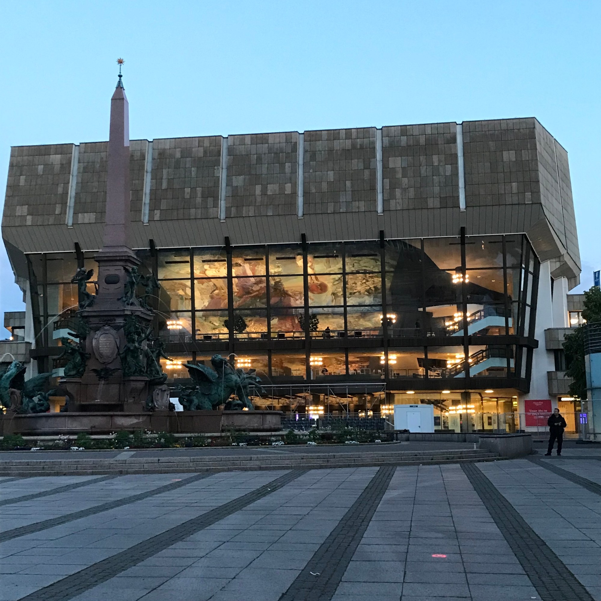 We stayed on Augustusplatz which is just a 10 min. walk away from the Markt where I got of. We stayed one night at the Radisson Blu hotel and the next two nights at Felix Suites am Augutusplatz, both conveniently located minutes away from the centre and with a tram stop in front of the hotel for trips a bit further away. Felix Suiten is a great hotel, with spacious rooms that have a kitchenette, are soundproof, have comfortable beds and offer some free drinks in the mini bar ( two large bottles of water, two bottles of lemonade and a large bottle of beer), a coffee machine with pods, a water cooker, a stove and a dishwashing machine. We did not take breakfast at the hotel but in the centre of the city. From the bar on the sixth floor you have great views over Augustusplatz and the centre of the city in the evening. Don’t miss the beautiful paintings on the ceiling of the Gewandhaus concert hall on Augustusplatz which is beautifully lighted in the evening.
