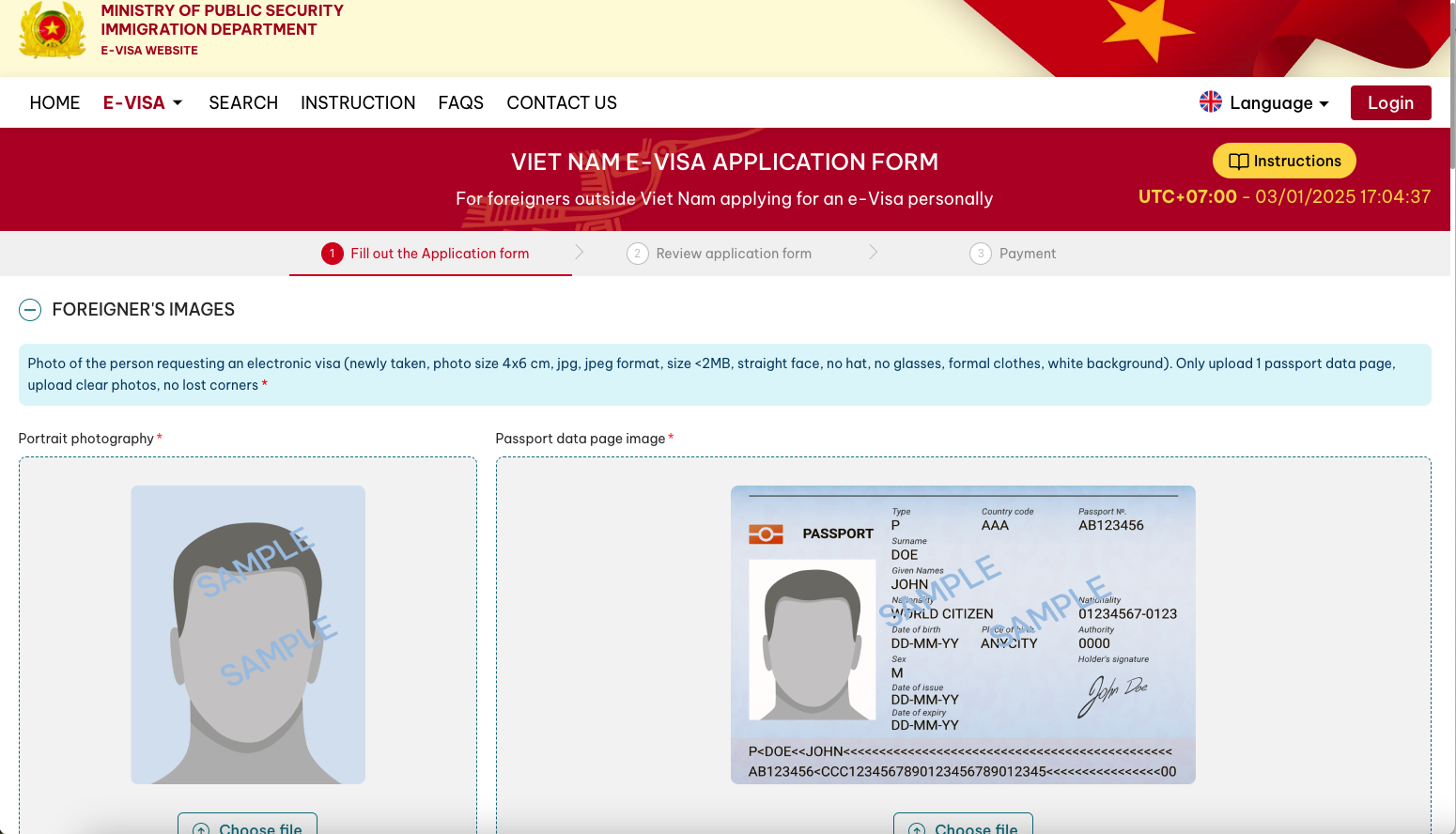 You have to upload a passport size photo (if you upload a different photo than that of you passport, make sure they are similar enough to avoid denial!), and a scan or photo of your passport data page.