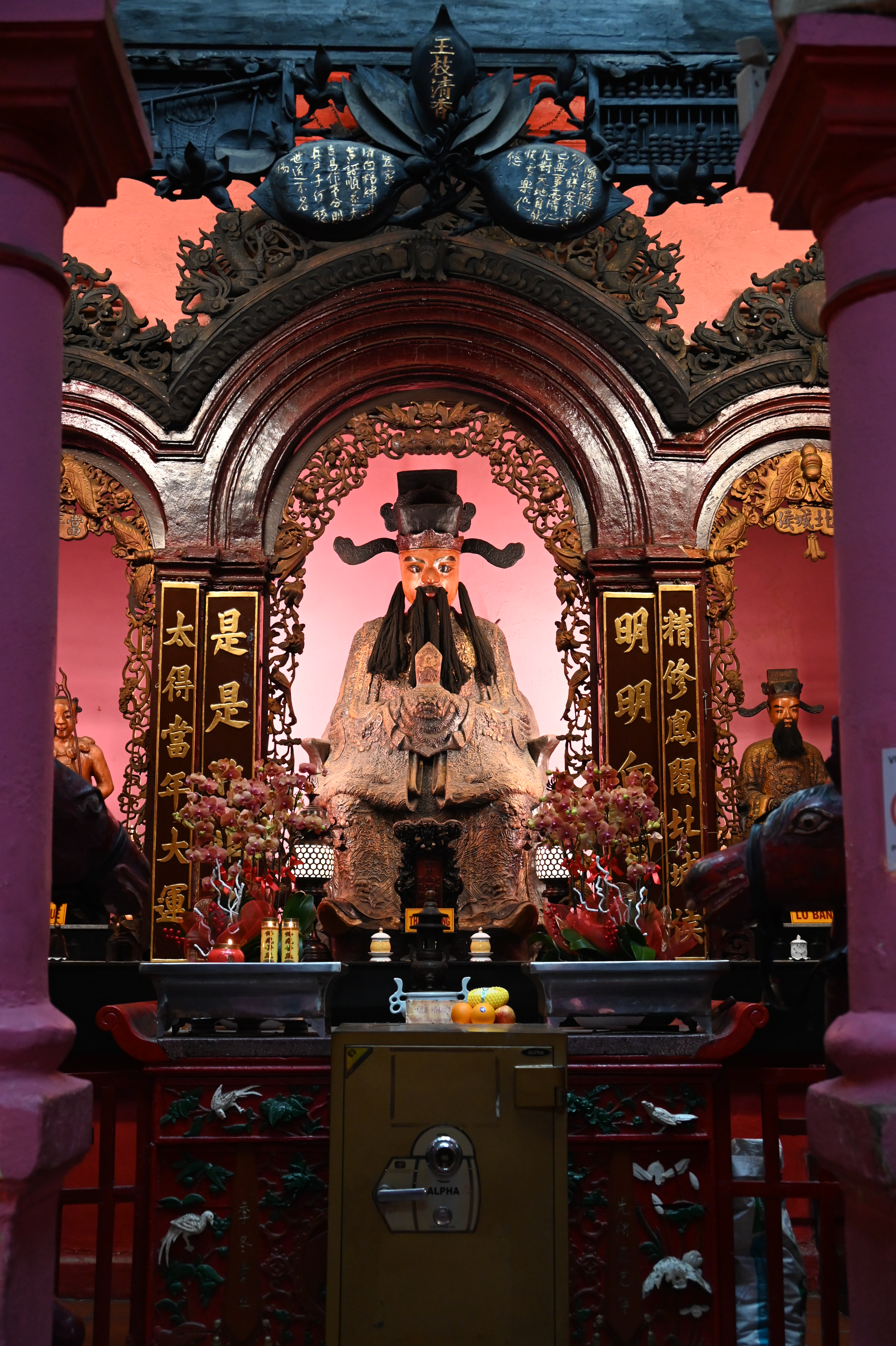 We continued to the Tam Son guildhall or Hoi Quan pagoda built by settlers from Fuzhou in Fujian province, very close to the birthplace of Mazu, founded in 1839. Mazu is worshipped here, as you might expect, but the main shrine venerates Mẹ Sanh, a fertility goddess. On the other side of the street is a small shrine in an open shophouse that features Chì Tù Mǎ, the warhorse belonging to famous general Guan Yu.