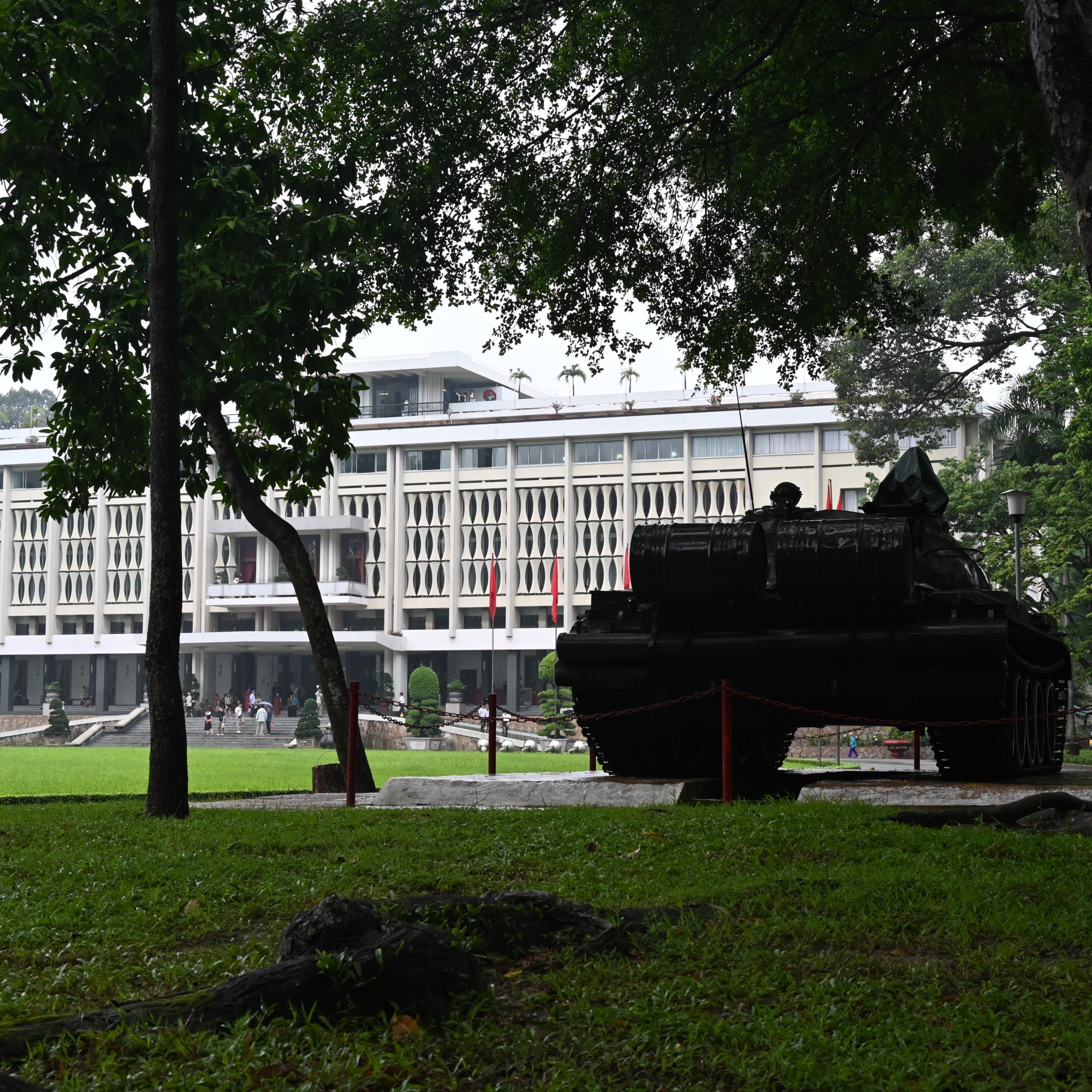 We walked in the direction of the centre, and decided to visit the Reunification palace also known as the Independence palace since it was still raining. We first took a drink in the little coffeeshop next to the ticket booth. We did not know what to expect, but the place is very interesting. It used to be the home and workplace of the president of the Republic of Vietnam, till the end of the American war in 1975. And it was where Saigon fell when tanks crashed though the gate on April 30th 1975. The architecture of the place is very modern and innovative. Inside you see the many meeting rooms, the president’s office and the war room, the residence of the president and the bunkers under the palace. In the garden replica’s of the tanks and on the roof a helicopter used by president Nguyen Van Thieu.