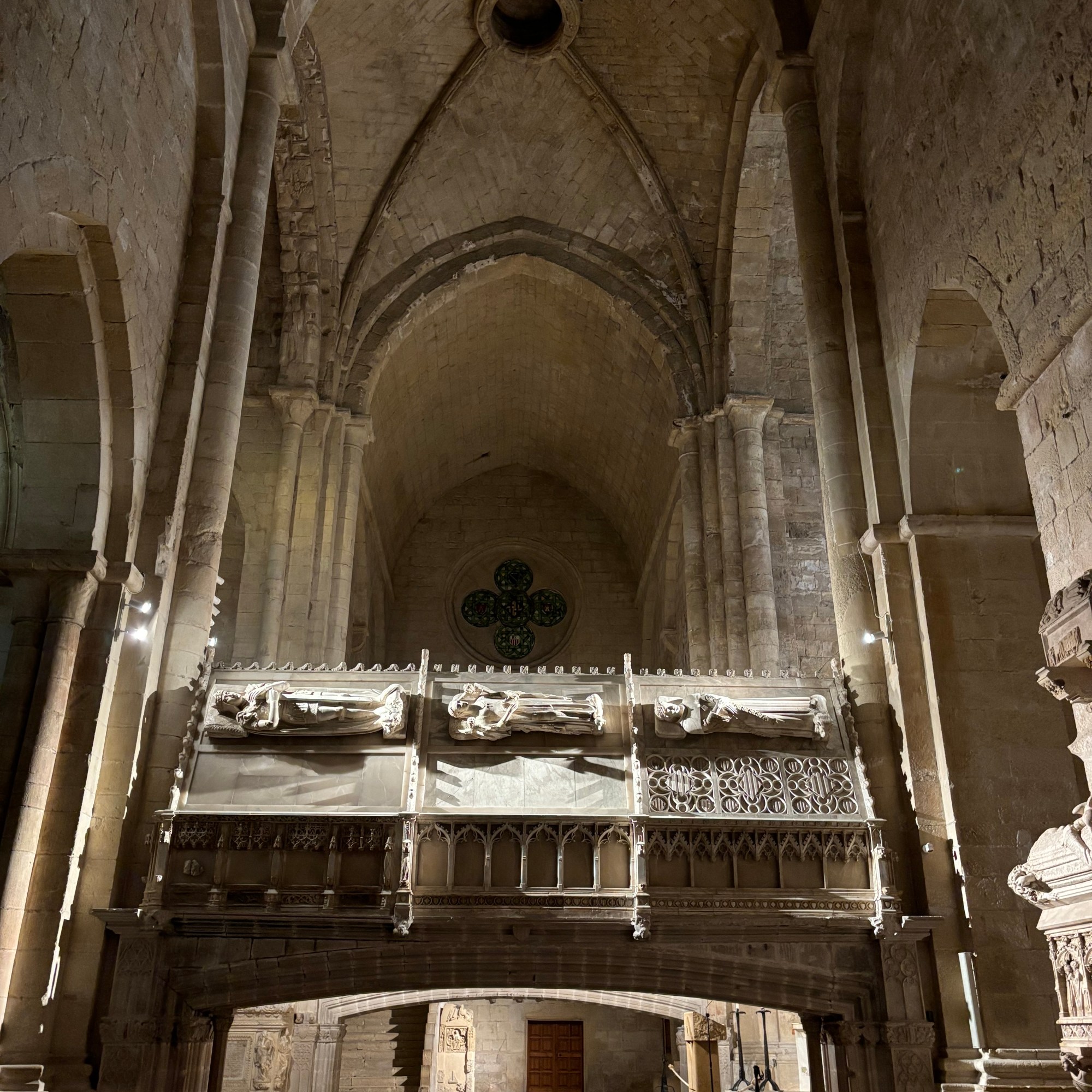 The next morning we set out to see two of three Cistercian monasteries on the Cistercian triangle which links the three most iconic monasteries (the Holy Cross or Santa Creus, Santa Maria de Poblet and Vallbona). Poblet Monastery was declared a heritage site in 1991 and is the largest inhabited Cistercian monastery in Europe in the province of Tarragona. The first one we visited was the Santa Creus monastery, considered one of the best preserved Cistercian monastic complexes in Spain. It was founded in 1150 but has no monastic life anymore since 1835, so you can visit every corner of the place. They were doing restorations in the inner courtyard of the gothic monastic part. In the 13th and 14th century the kings of Aragon chose the monastery as a royal pantheon. In the church you find the royal tombs of King Peter III and of his son and his son’s wife.
