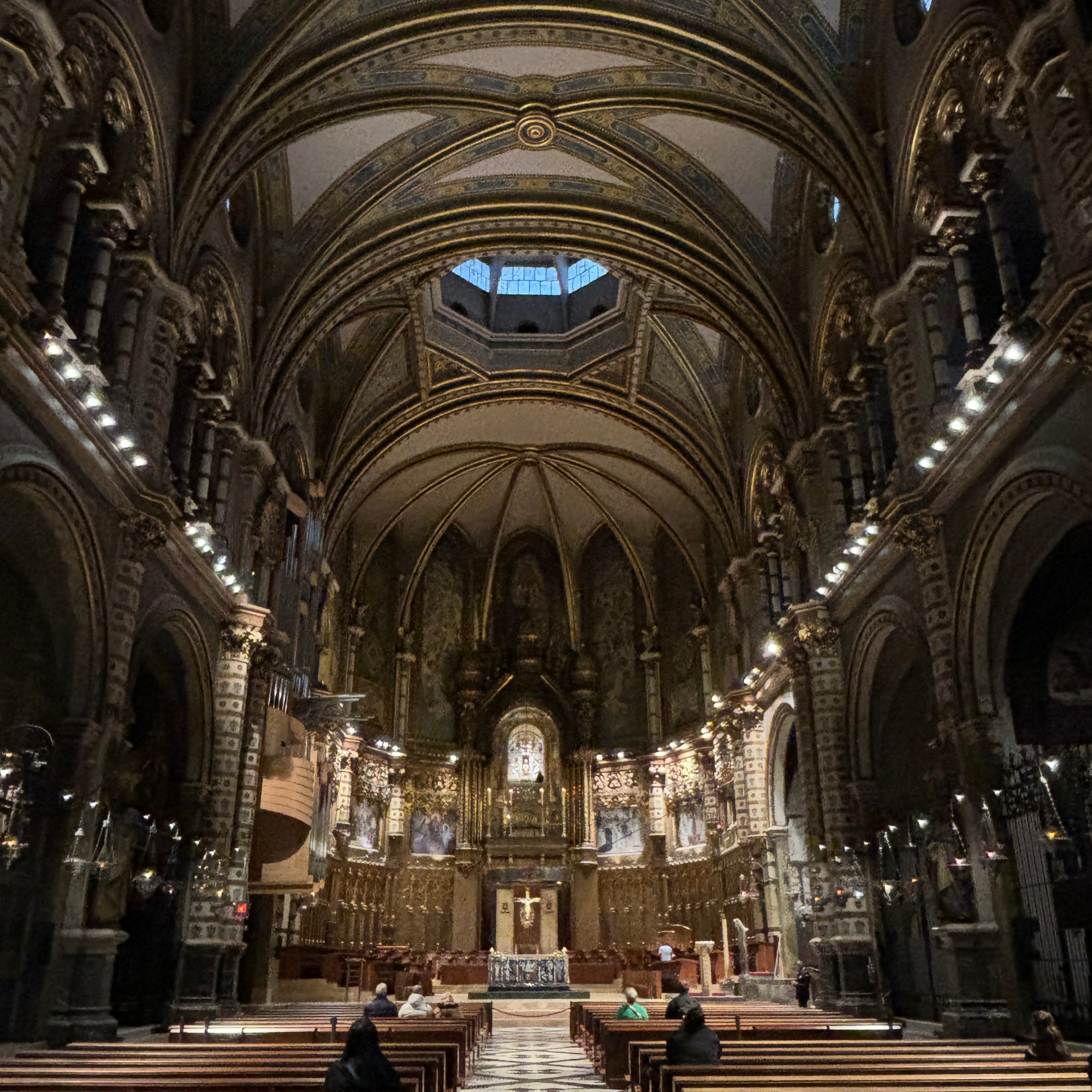 We had planned a visit to Montserrat on our last day. We checked out after breakfast and headed first to La Colonia Güell to see the chapel built by Gaudi. The settlement was founded by the famous industrial Eusebi Guell, as housing for the workers of his textile mill. Some of the leading modernist architects of the day were involved in the construction of the village, resulting in highly beautiful spacious buildings. Antoni Gaudí was commissioned to design the church and his project consisted of an upper and lower nave, towers at the sides and a belfry measuring 40 m in height. In 1914, when only the lower nave had been completed, the Güell family withdrew funding for the project. The church, now known as the crypt, included Gaudí’s architectural innovations for the first time which were later integrated in the Sagrada Familia in Barcelona.