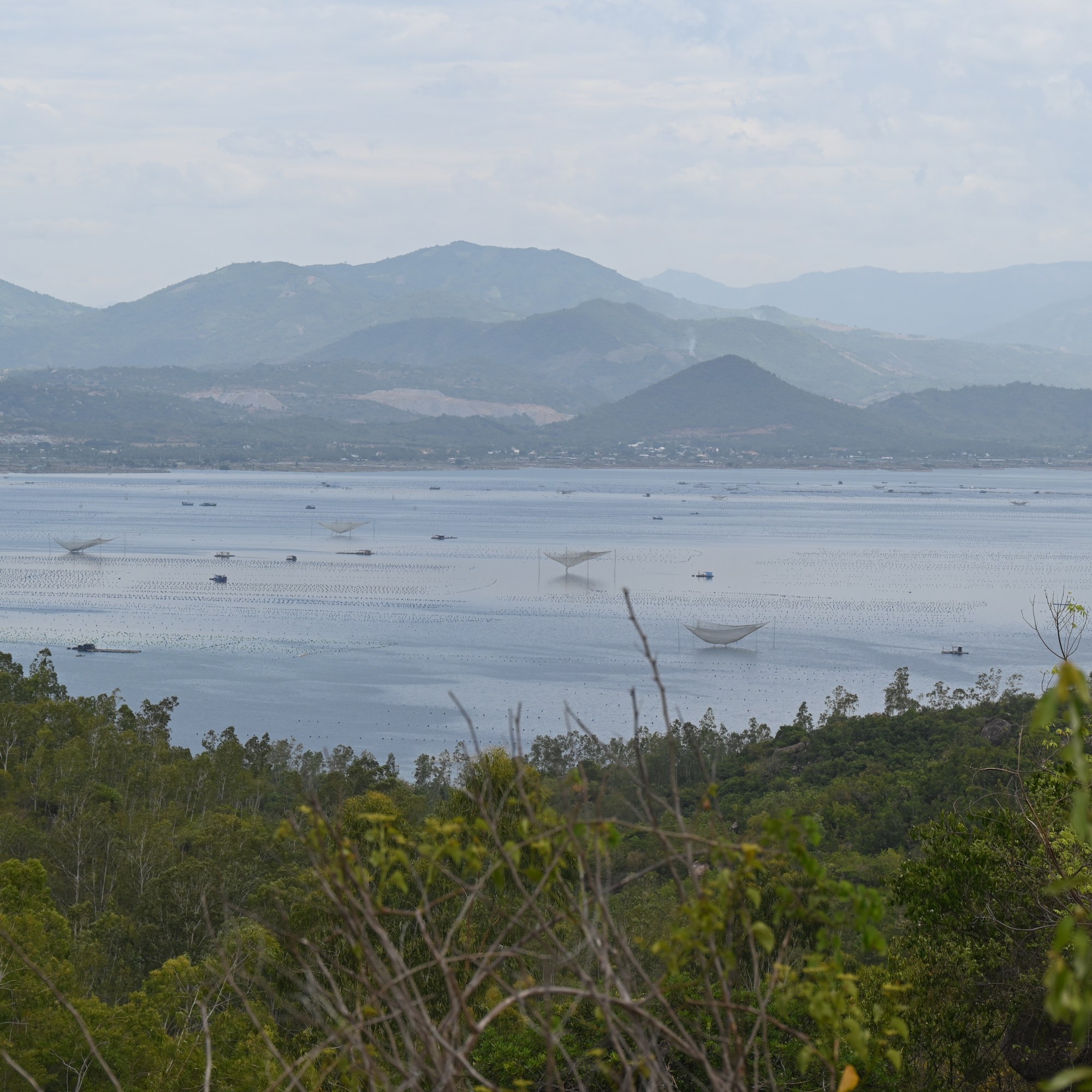 We too the DT701 coastal road and took a smaller road off to the left to see the seaweed beach (Cánh Đồng Rong Biển Ninh Thuận), but it was high tide so no seaweed… the rest of this smaller road was lined on both sides with kilometers of shrimp farms and a lot of garbage everywhere. This is where the shrimps (scampis) are farmed that we find deep frozen in our supermarkets… not a pretty sight.