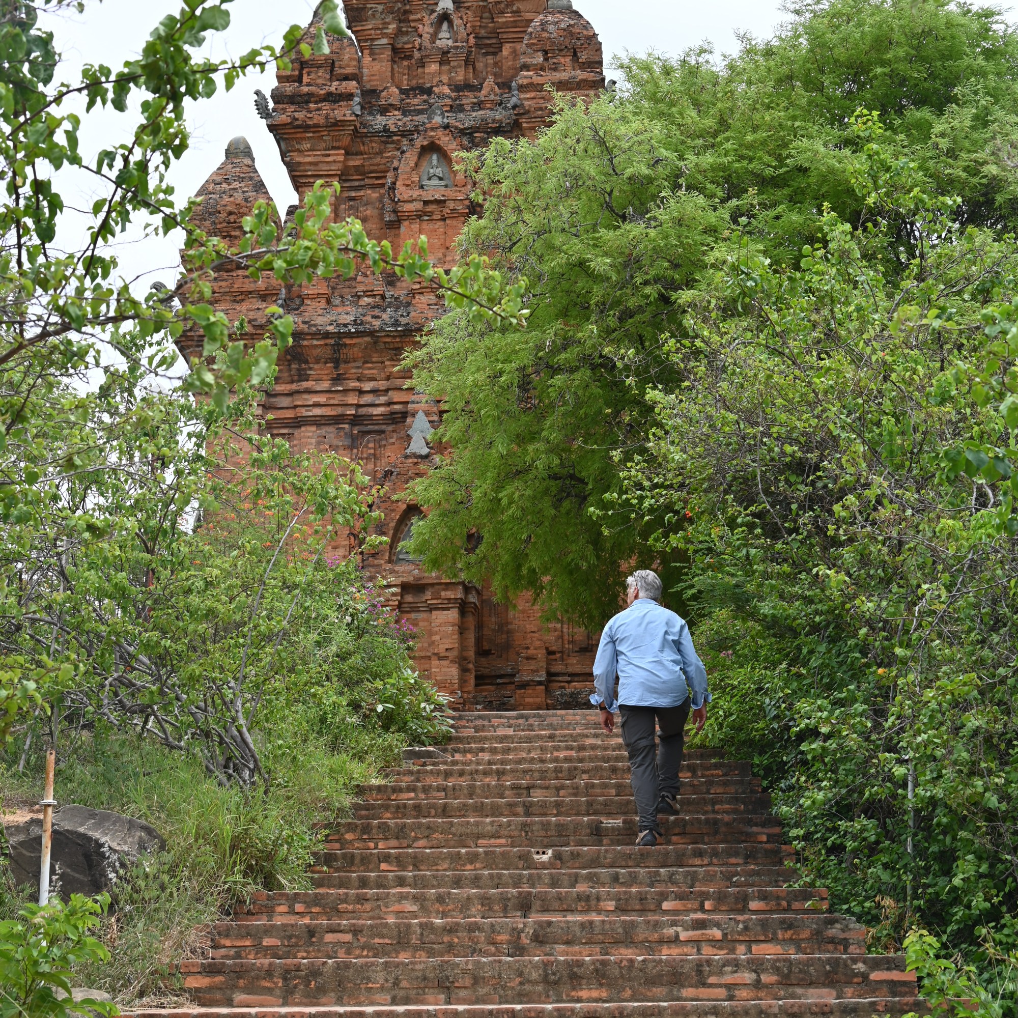 After a good nights rest at Myhoa Lagoon Kiting town (we really needed it) and a tasty breakfast we hit the road again to go further South in the direction of Mui Ne. We first made a stop in Phan Rang to visit the 14th century Cham temple built on a hill. Like everywhere else the Vietnamese tourists all arrived dressed up or rented a costume there to take (very posed) pictures of themselves without really looking at the temples…