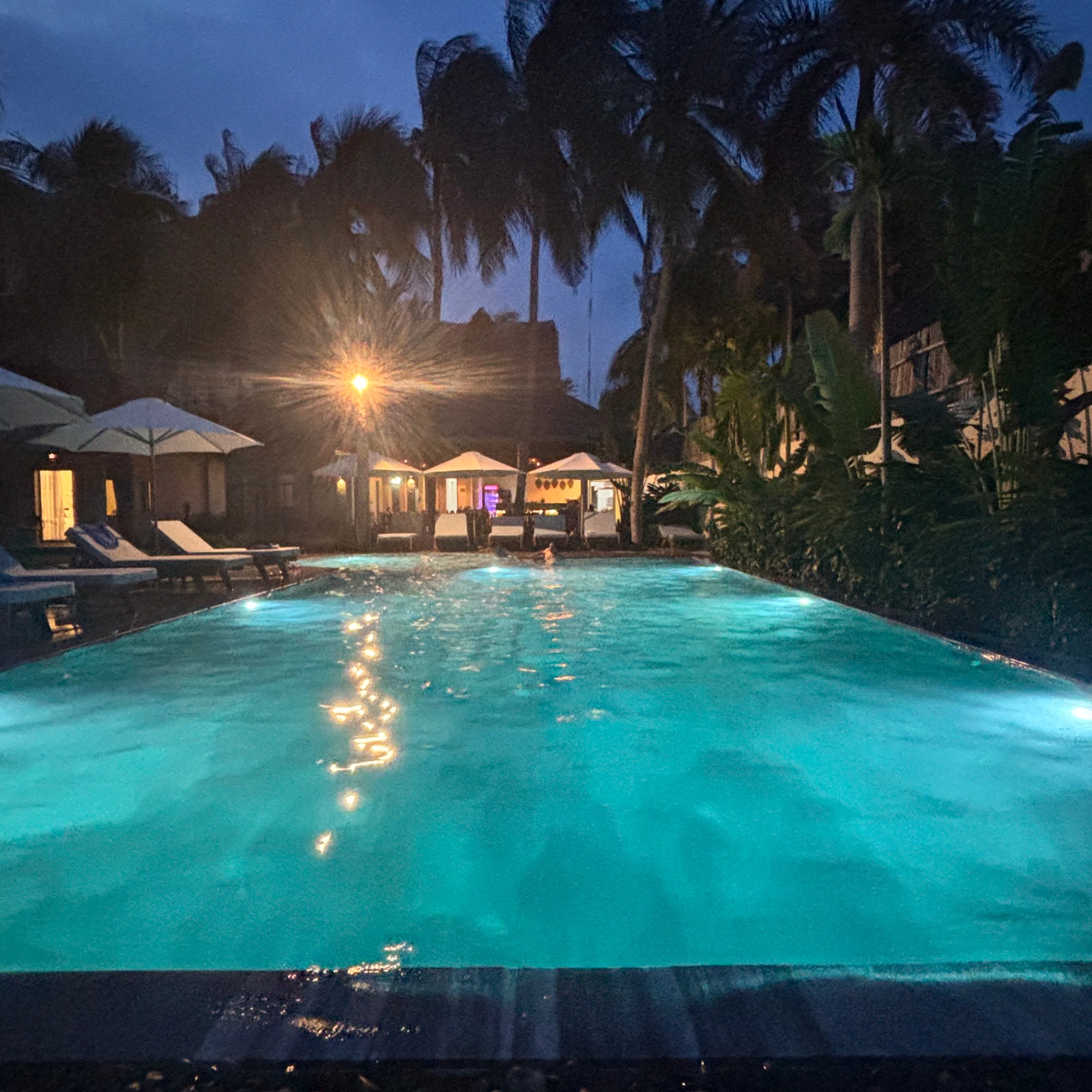 We went out for a Banh Mi for lunch (a Vietnamese ‘sandwich’ on a French style baguette ), while sitting out a tropical rain shower, and to withdraw some cash. In the evening we went out for dinner in a really nice restaurant in a nearby resort (Cham garden restaurant) set in a beautiful lush garden.