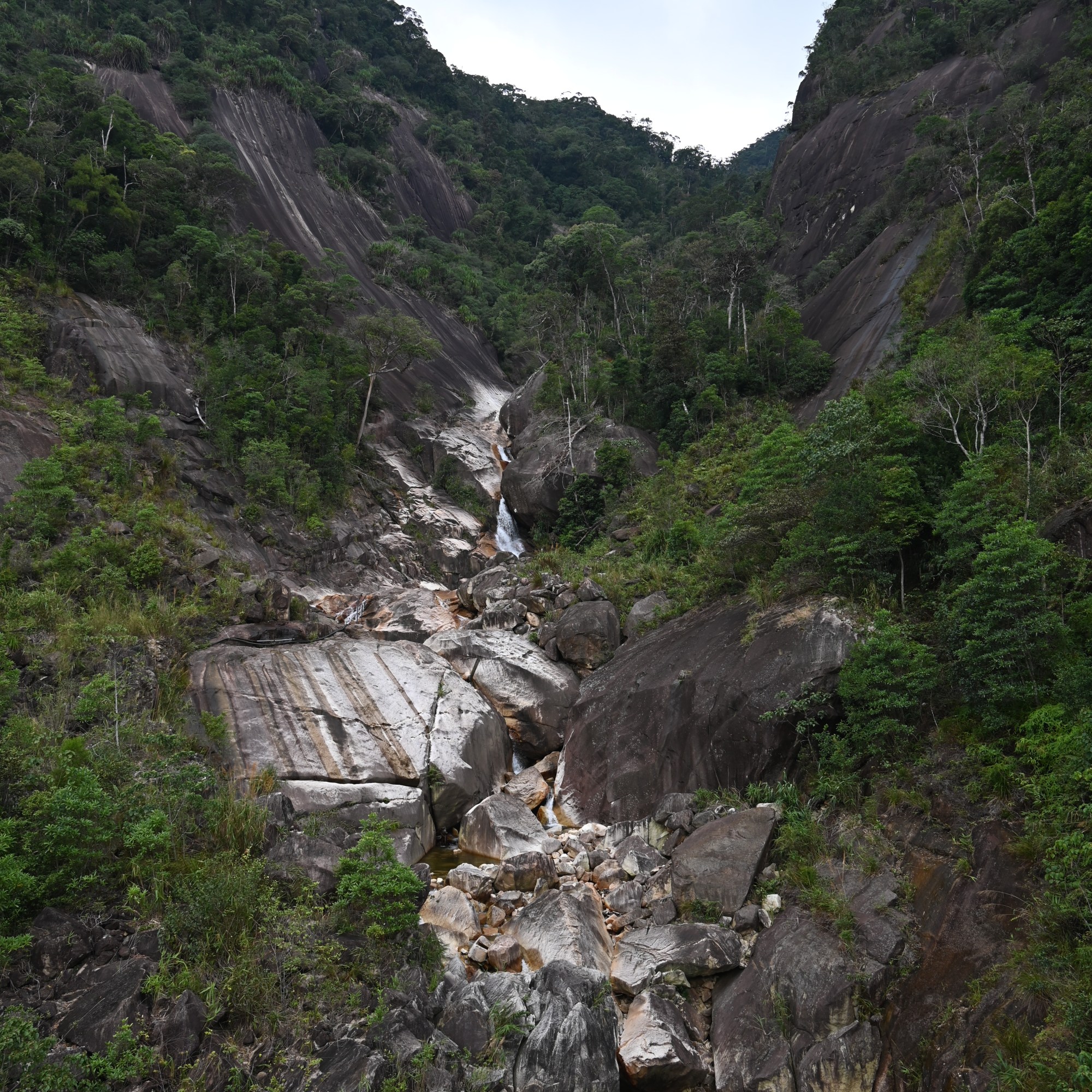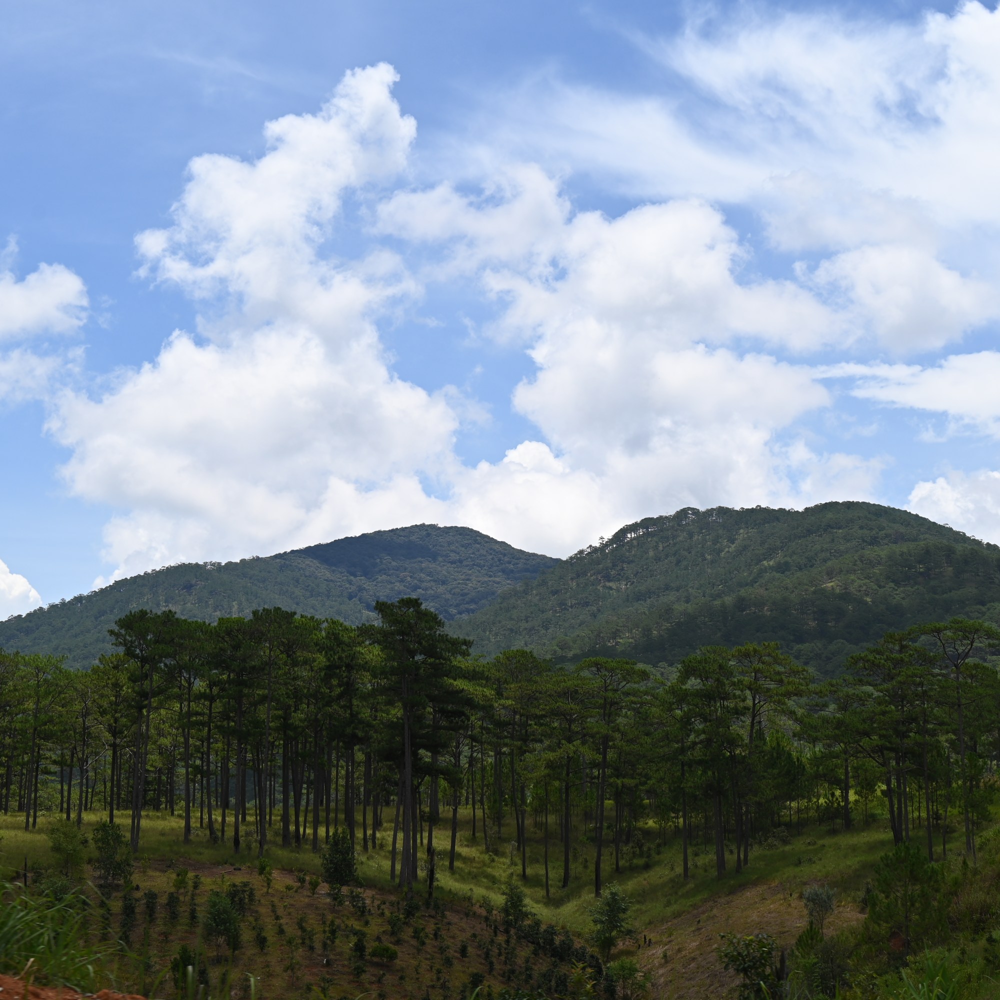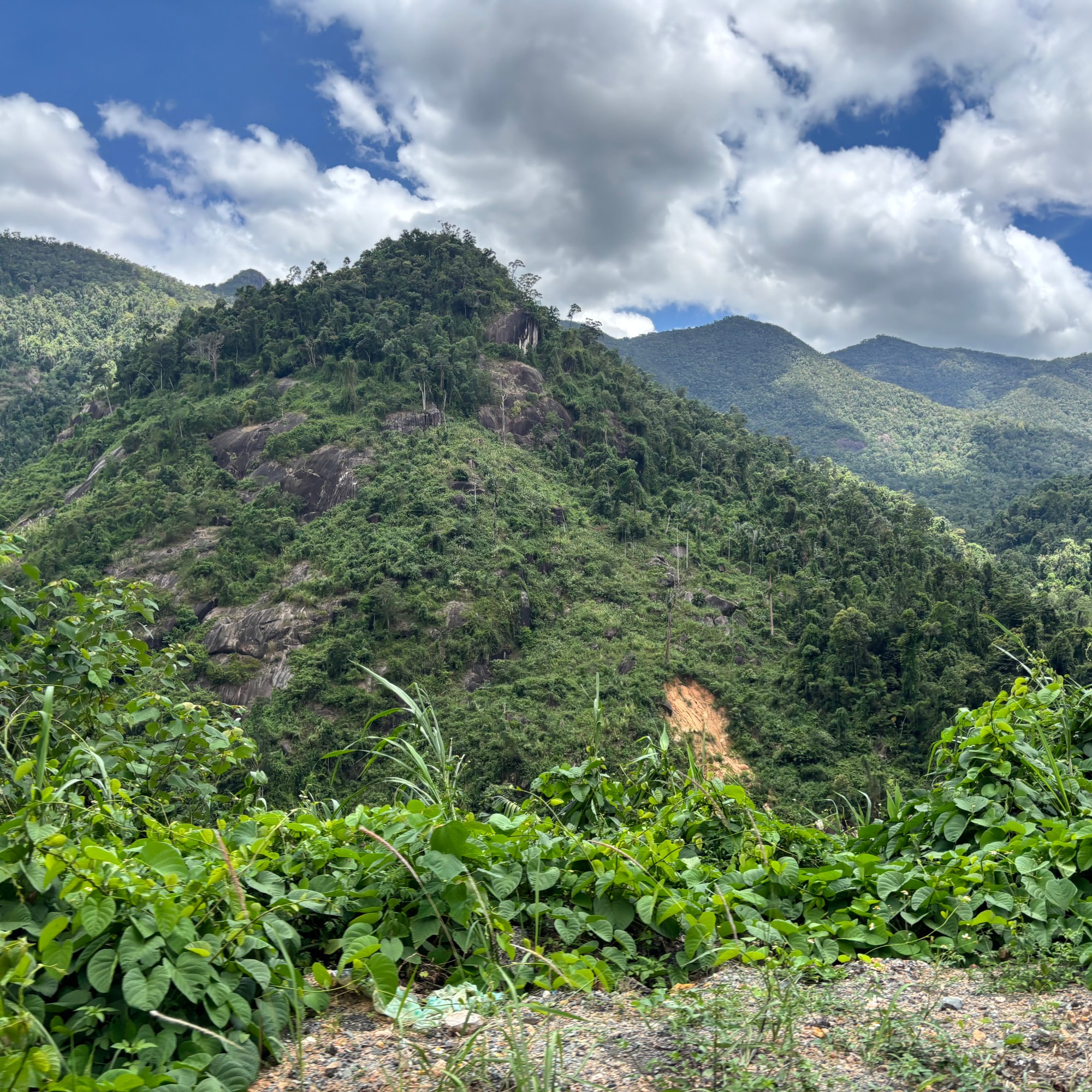 After a short stop for a drink and a banh mi (baguette) with omelette we drove on over the beautiful Khanh Le pass winding between green covered mountains. A 29 km long pass that descends from 1600 to 200 m above sea level. It is known as a very beautiful stretch of road, but also a treacherous road since many accidents often deadly, happen here, especially when there is a lot of fog or when it rains. You have stiff mountains on one side and deep abysses on the other side. Part of Khanh Le Pass is located within the Hon Ba Nature Reserve of Khanh Hoa Province and the other is in the Bidoup-Nui Ba National Park of Lam Dong Province. Primeval forests can be seen all along the length of the pass.