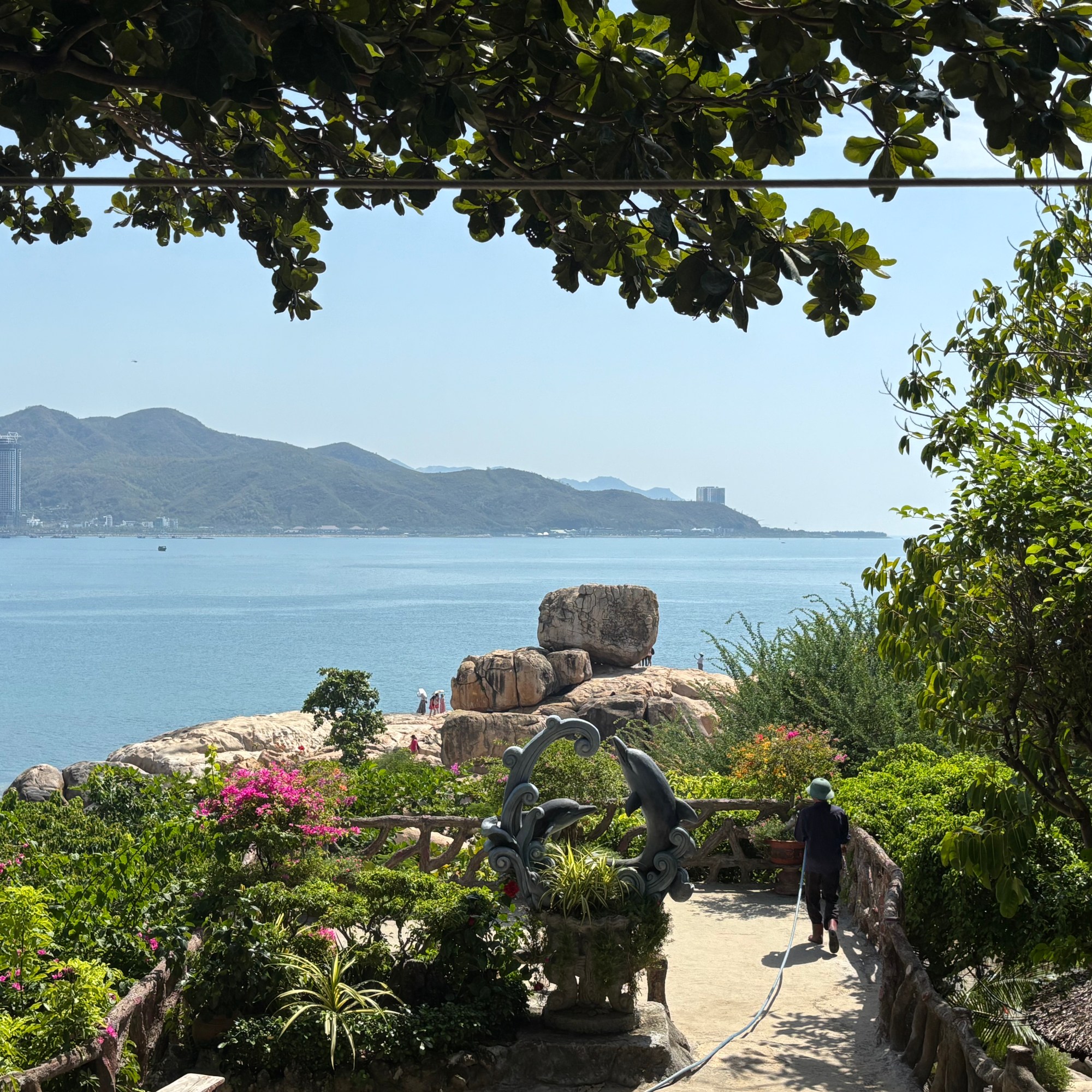 For the second week of our trip we left in the Northern direction from Nha Trang. We made a short stop at Hong Chong, just outside Nha Trang, a small promontory with unusual layers of boulders called husband and wife, one in the form of a hand. As expected the place was teeming with busloads of tourists and you had to pay an entrance fee. We took a picture from above and continued.