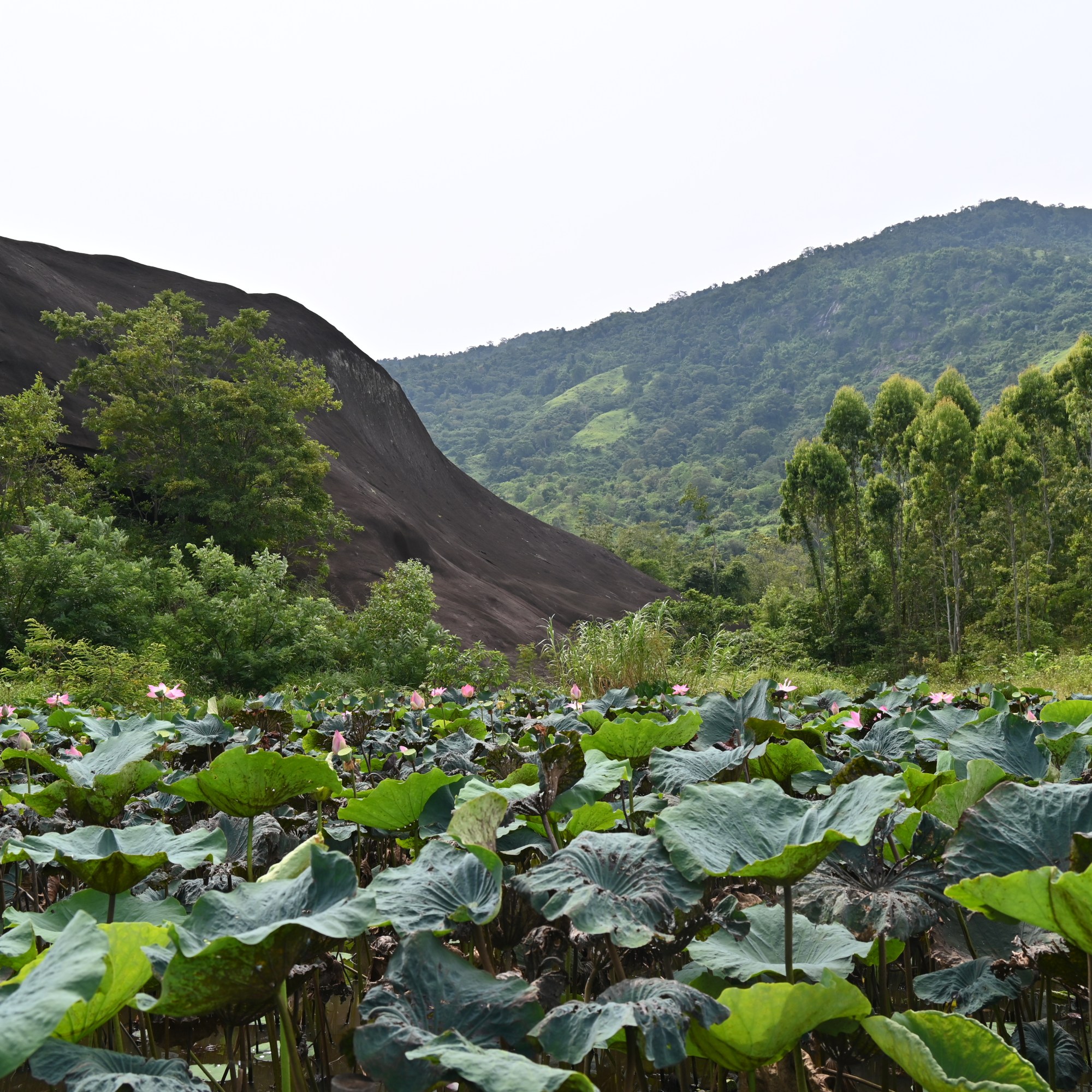 After about 30 min. we made a first stop at Yang Tao Elephant Rock, a huge monolith rock that resembles a huge elephant lying down in the landscape. It is 200 m long and 30 m high and can be climbed, which we did not do since it was too hot! The entrance tickets costs 50000 dong and includes a free drink. At the entrance several minority longhouses are showcased surrounded by a flowery garden and two lotus ponds,